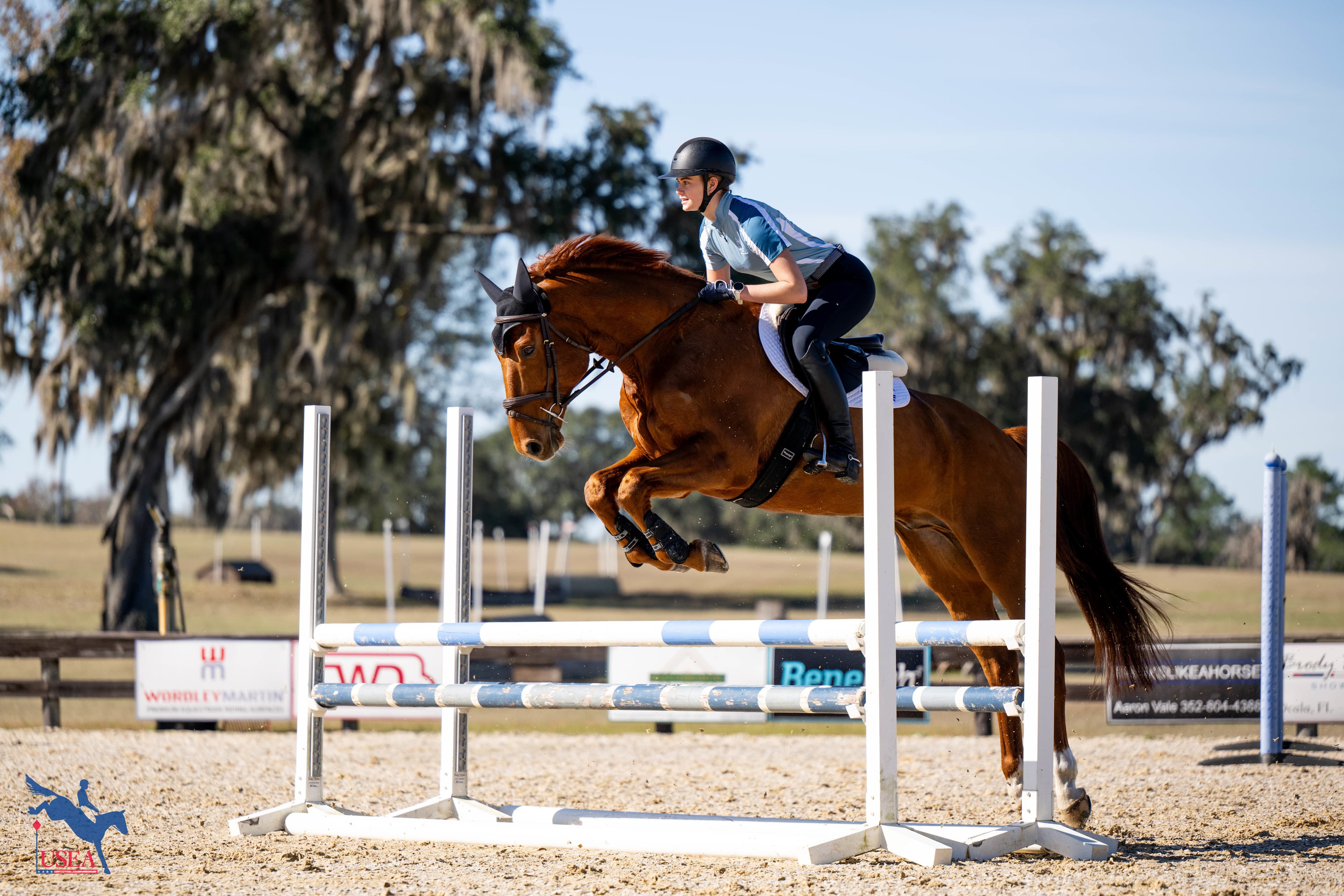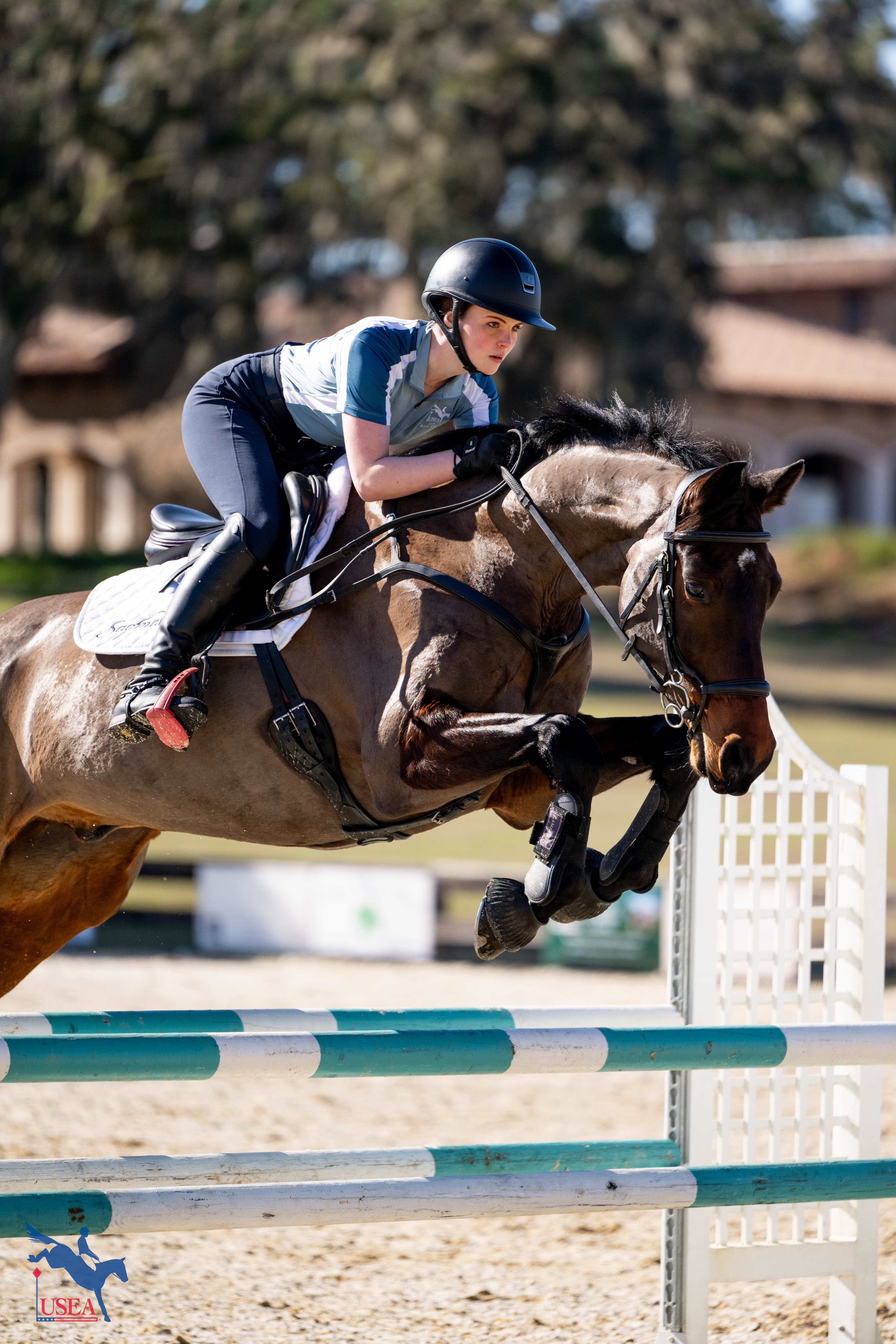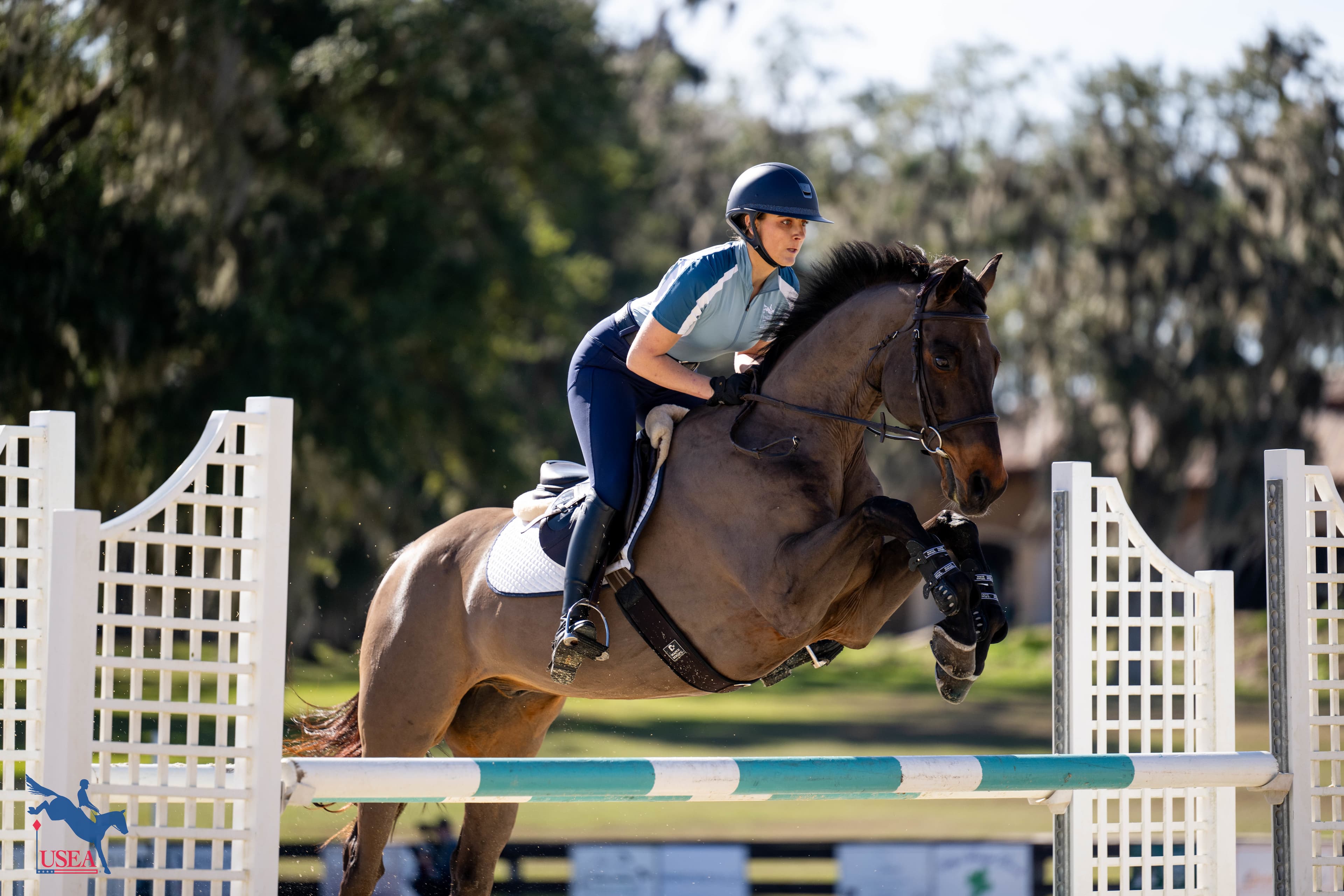 Ocala, Fla.—Jan. 1—Having established clear lines of communication yesterday on the flat, it was time to take those tools to the jumping arena during day two of the 2024-2025 Emerging Athlete Under 21 (EA21) National Camp held at Sweet Dixie South in Ocala, Florida. The curriculum for the second day focused on the rider’s responsibilities and maintaining rideability.