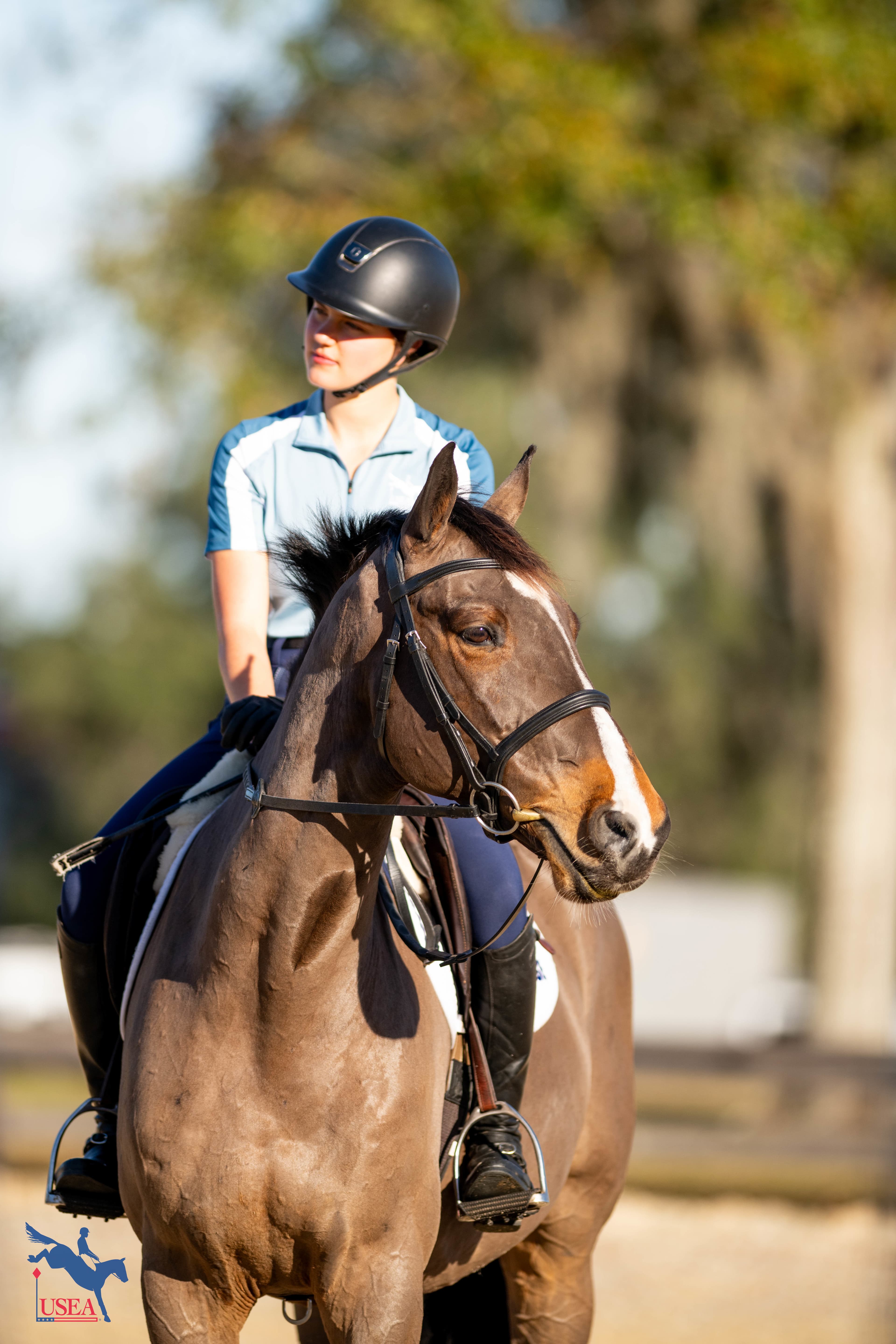 Caterina Ritson, riding a catch ride generously provided by Sara Kozumplik, agreed that so far the process has been helpful. “It’s been really good being able to take the information from the lectures and the lessons, and apply that to a different horse,” she remarked. “My coaches say something similar but it’s been helpful to hear it in a different way.”