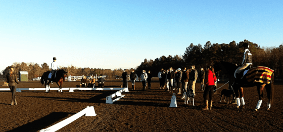 The Fork Stables in Norwood, North Carolina hosted a clinic over New Year’s and nearly 30 riders signed up for a jam-packed two days full of learning, camaraderie, and good ol’ fashioned fun. The clinic was taught by Rebecca Howard, Sinead Halpin, and Lynn Symansky and included four lessons for each rider: a dressage, show jumping, cross-country, and warm-up lesson. In addition there were mounted demonstrations, lectures, and a pot-luck dinner. Winter is the perfect time to learn new skills and this clinic gave the perfect opportunities for riders to do so.