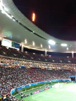 We went to a soccer game tonight in the main stadium, which is a site to behold. Mexico played Ecuador and a lot of locals were there, which made it very festive. We had a bit of an adventure getting home but were able to do so without trouble. The experience of being an athlete going to another venue is pretty great because we went in a back entrance and were escorted by staff to our seats. While being here in Mexico, the State Department has to know our whereabouts at all times and has agents all over keeping track. We thought we were stealth going to the soccer game but as soon as we got the main floor of the stadium an agent approached asking if we were equestrians and explained protocol for that venue. It is quite an experience. I cannot tell whether I feel important or whether it is creepy. Either way it adds to the experience of being an athlete for the United States of America.