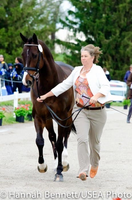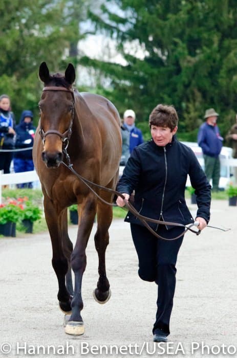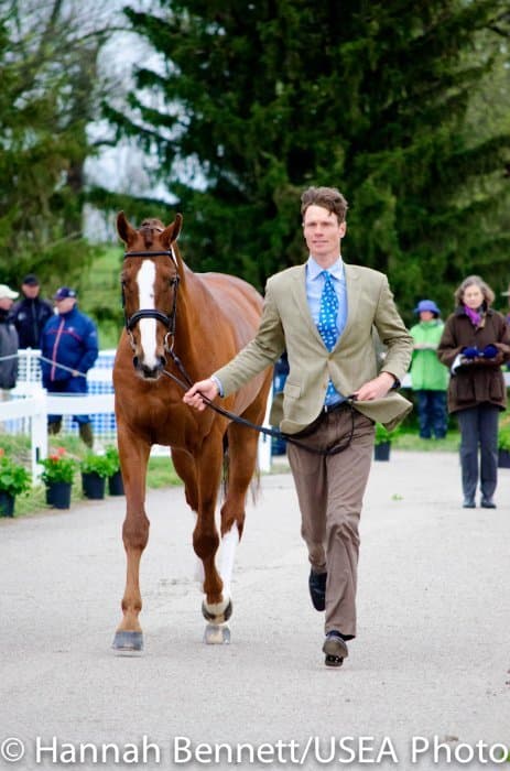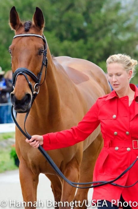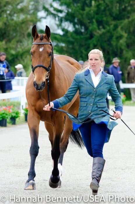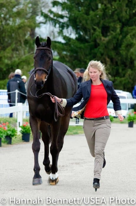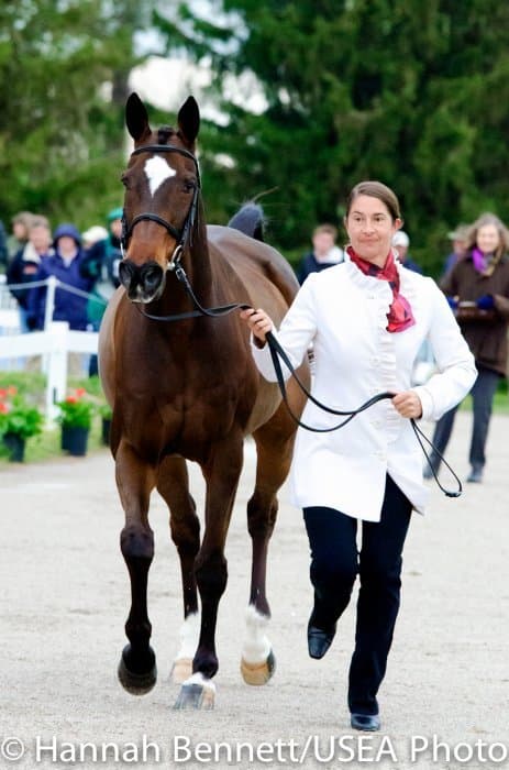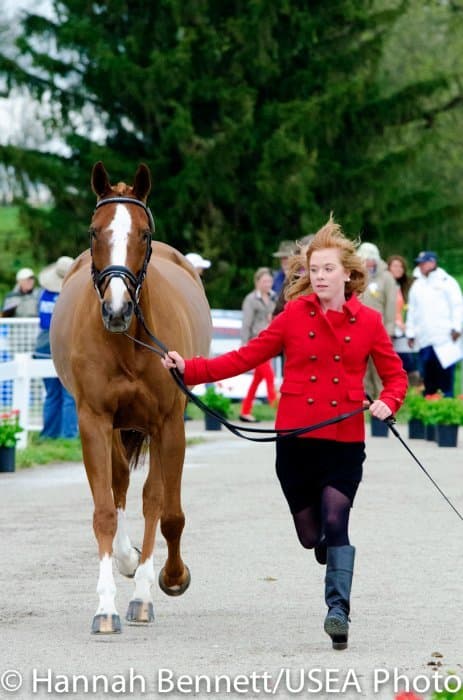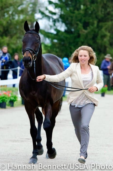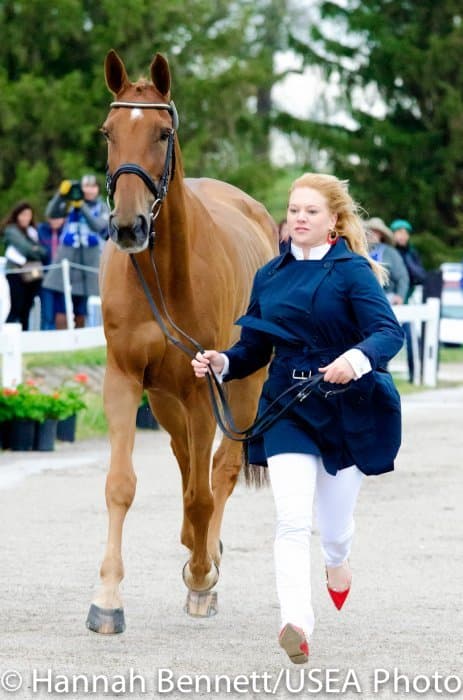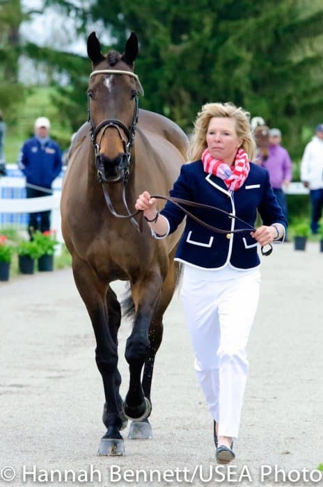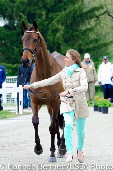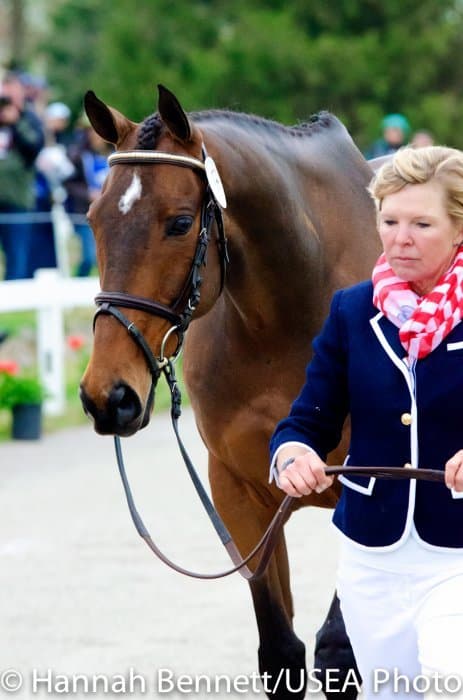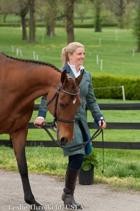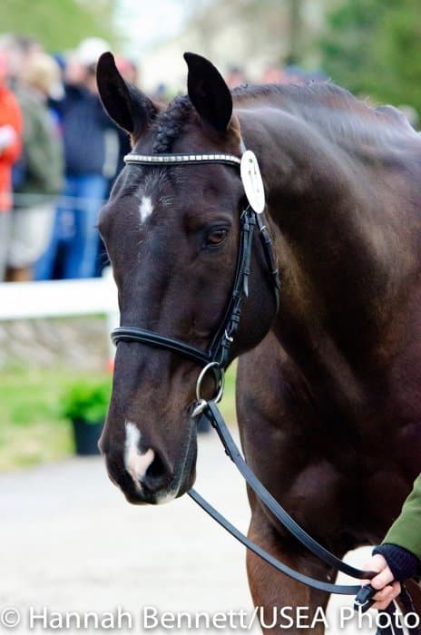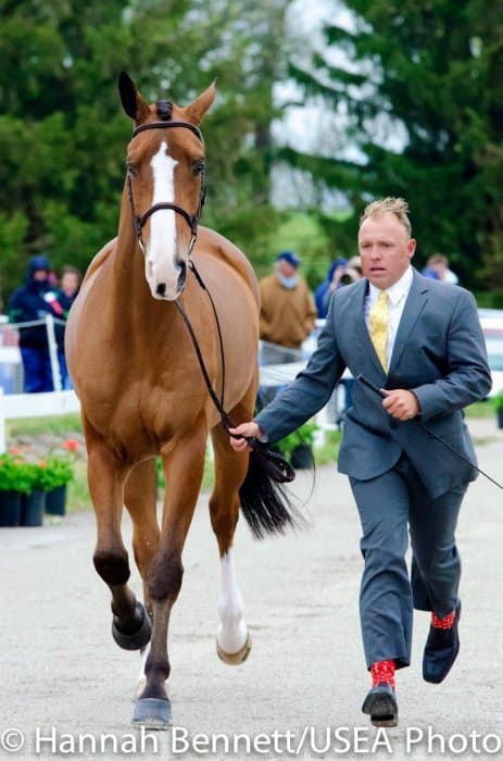 Heavy rains saturated the Kentucky Horse Park this morning, and though the downpour subsided by the start of the First Horse Inspection at 3:00 p.m., the temperature had dropped significantly. The horses were feeling fresh, and many seemed ready to charge out of the startbox. Several horses struggled to stand quietly for the Ground Jury, and the crowd of photographers at the end of the jog lane gave others a good excuse to spook. Nevertheless, horses and riders were spectacularly turned out and looked fit and ready for the week.