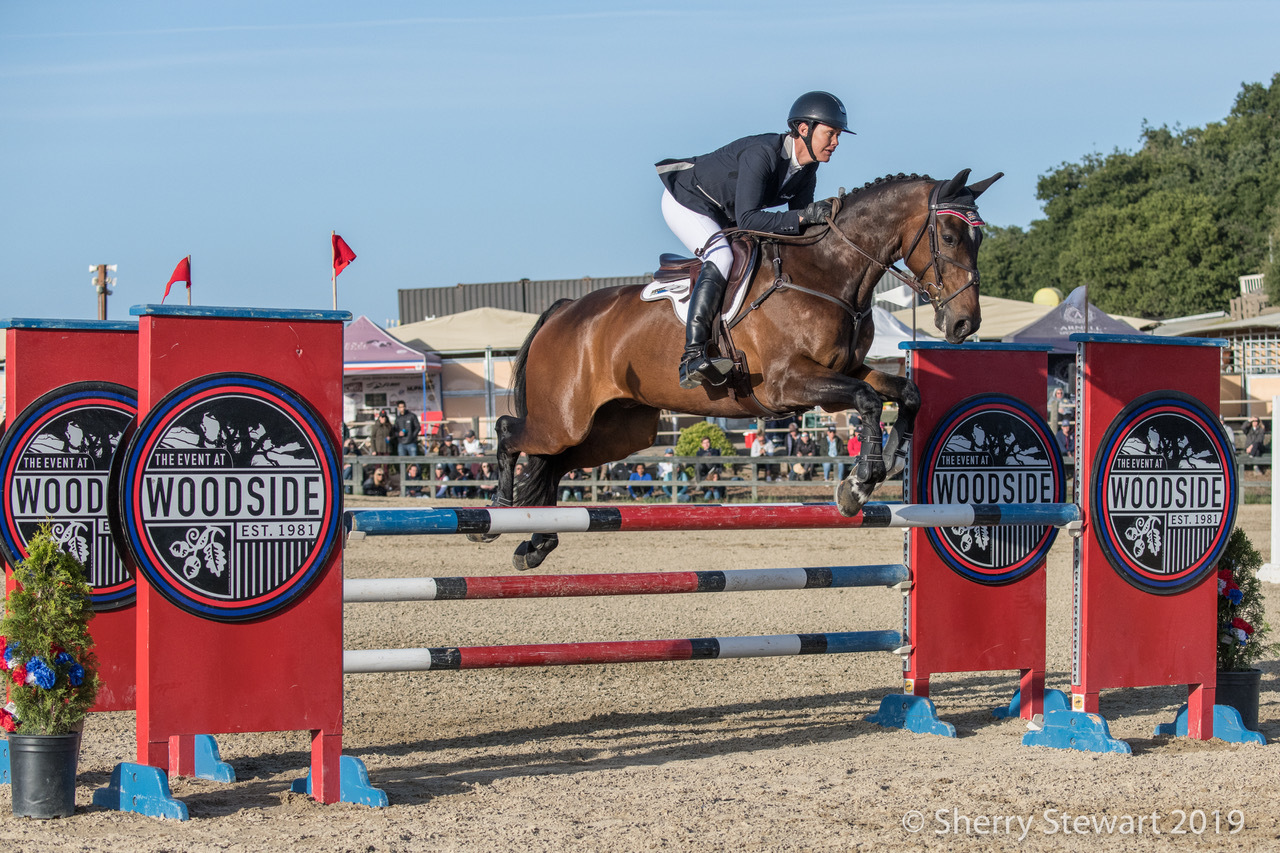 With two very competitive mounts, 15-year-old Meg Pellegrini finished first and third in the rider division of the Preliminary Challenge, the marquee event of the Spring Event at Woodside at the Horse Park at Woodside.