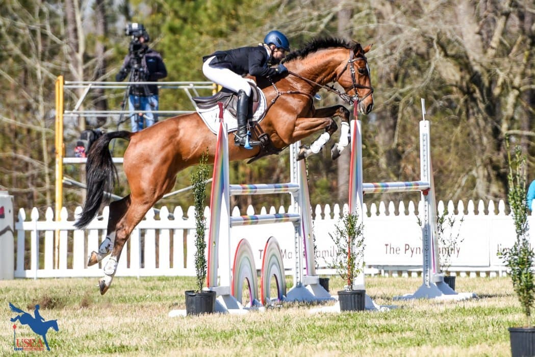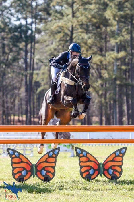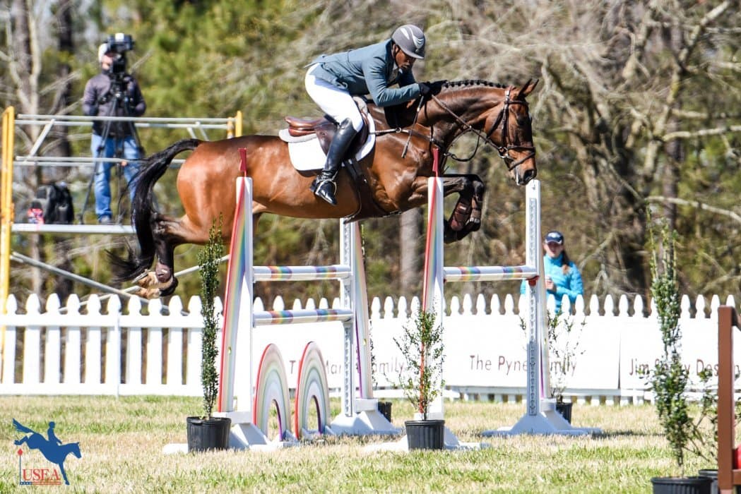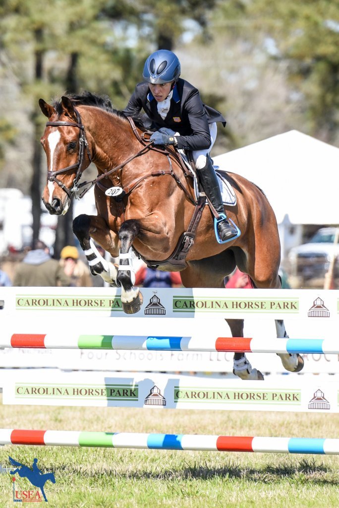 Kim Severson was the only competitor that had a rail in hand over the person below her on the leaderboard, but she didn’t need it as Cooley Cross Border jumped a flawless double clear round to stay on his dressage score of 20.8. Only 14 of the 56 pairs jumped clear and inside the time over Marc Donovan’s Adequan USEA Gold Cup CIC3* track at the Carolina International CIC and Horse Trials in Raeford, N.C.