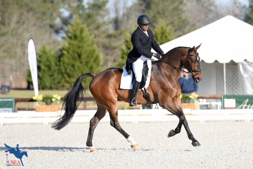 The only other rider from today’s dressage to crack into the top 10 was William Ward aboard Grando (Grasco x Queen Live), Donald Devine’s 9-year-old Westphalian gelding. He sits in a tie for seventh place with Lynn Symansky and The Donner Syndicate’s 15-year-old Thoroughbred gelding Donner (Gorky Park x Smart Jane) on a score of 28.8.