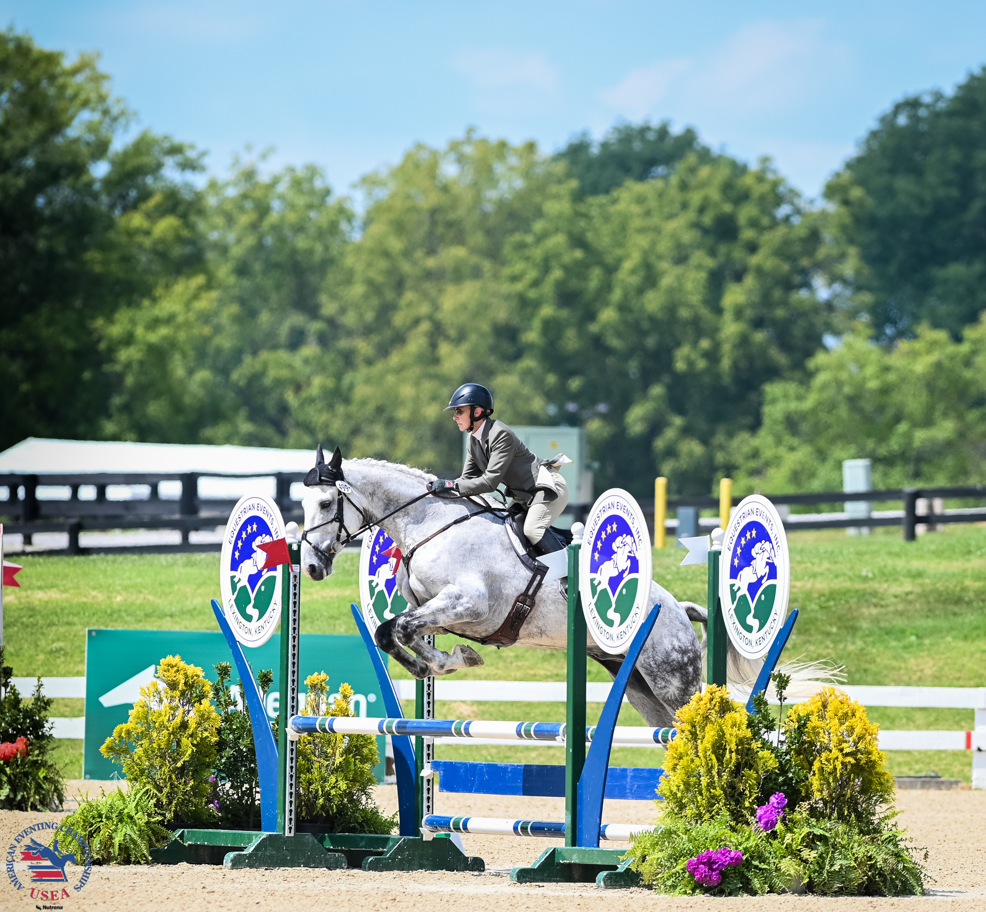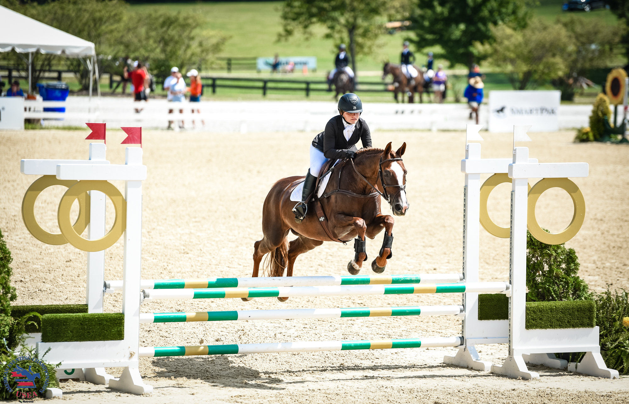 The top 3 in this division remained the same throughout the weekend as all three combinations aced their tests each day. Maybe overnight leader, 12-year-old Kendal Fansler (Clarkesville, Maryland) manifested her win, but she had predicted the day before that show jumping should be a breeze for her Connemara-cross Delilah’s Boy, and indeed it was. “It was so much fun!” Fansler beamed after her win. “He definitely saved my butt on some of the fences but he was awesome!”