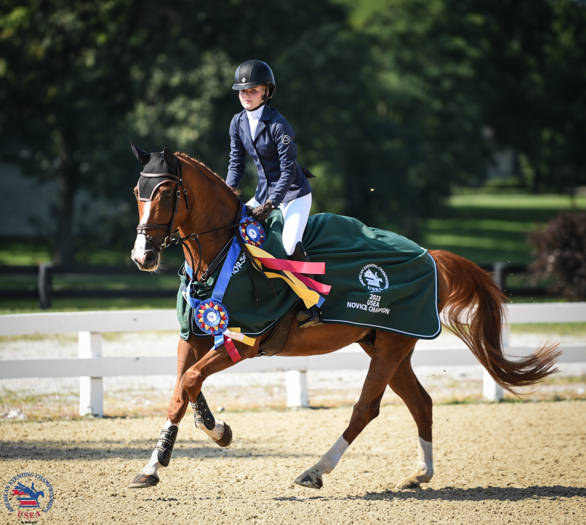 Emerson Padgett (Akron, Ohio) has only been riding her 7-year-old Selle Français MSH Giant Jac’ka (Quebracho Semilly x Loupaline Du Haul) since December, but they’ve established enough of a partnership to clinch the win in the Novice Junior Championship, leading from start to finish and adding nothing to their dressage score. “It's really exciting!” Emerson said after her victory gallop, “He was just so good, and it was a really fun weekend, and this is just like the cherry on top for it to be so successful.”