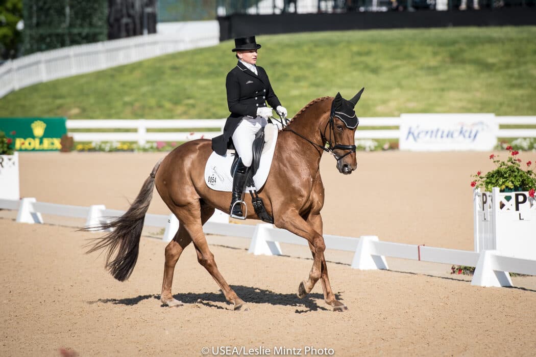 At the lunch break after day two of dressage at the 2016 Rolex Kentucky Three-Day Event Presented by Land Rover, fifty-six pairs have performed their test and six of these have broken in to the top ten. Jacqueline Mars, Patrick White and Raylyn Farms’ RF Demeter, ridden by Marilyn Little, who currently sits in second place after a textbook round scoring a 42.50.
