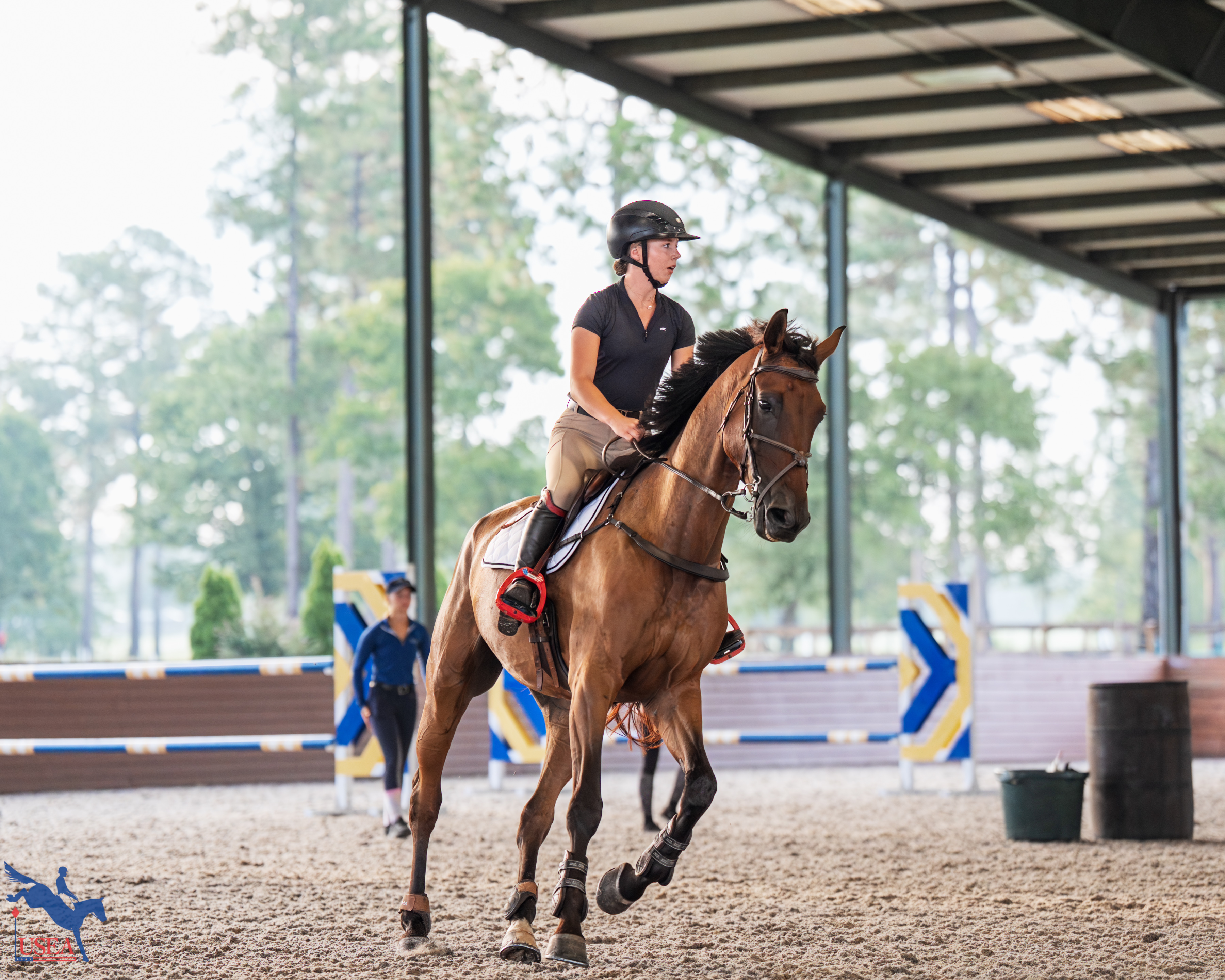 Aiken, S.C.—July 30— “In show jumping, there’s never not something to do.” This was coach Rebecca Brown’s opening remarks on day 2 of the USEA’s Emerging Athletes Under 21 (EA21) East II Clinic. A quality jump comes from a quality canter, and Brown transferred all the tools used in the previous day’s dressage lessons directly into the athlete’s course work.