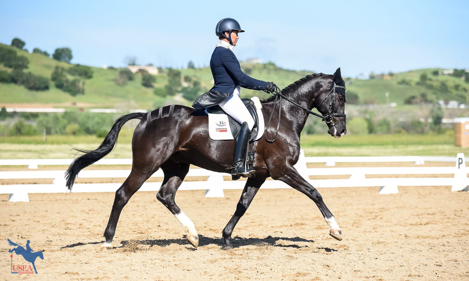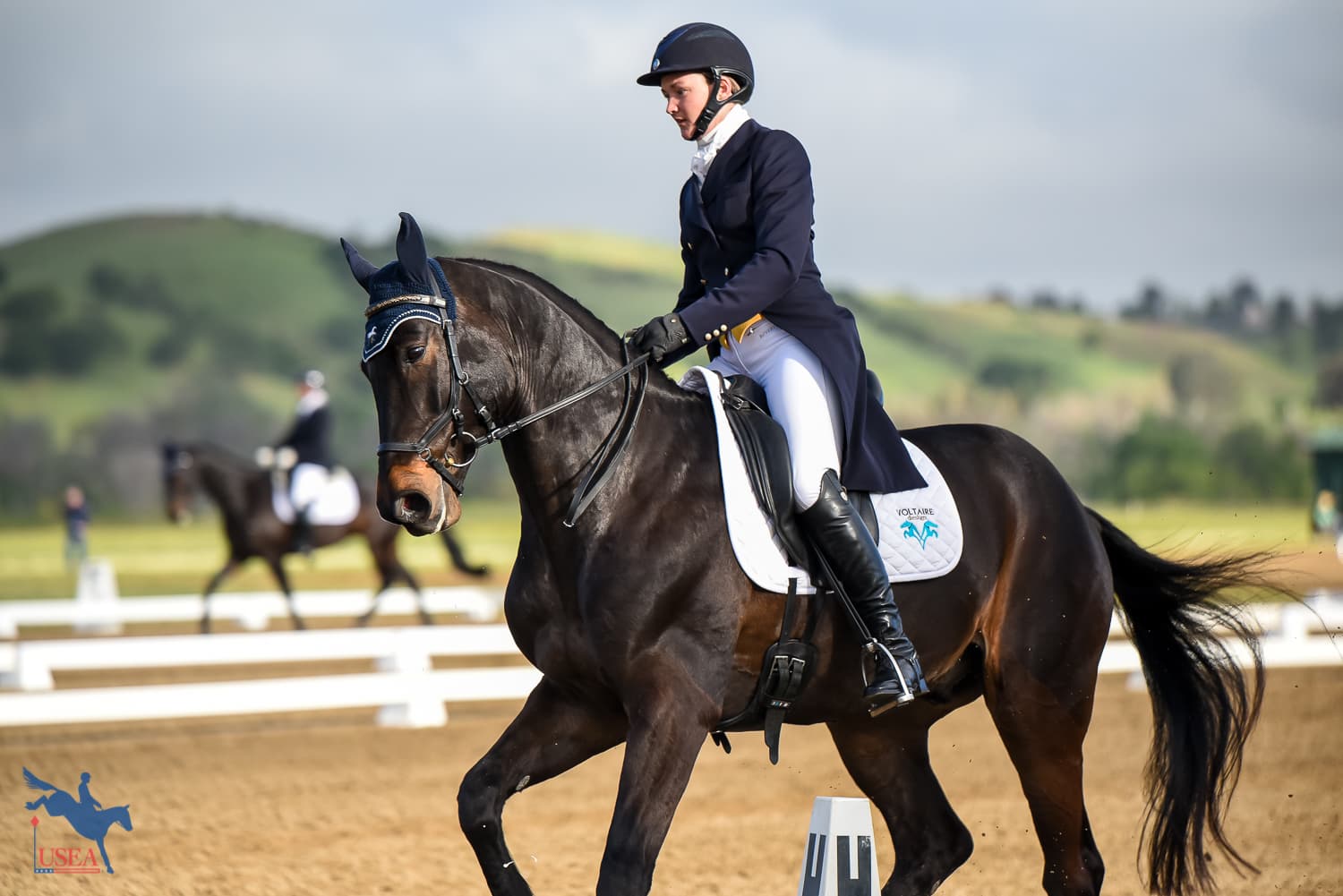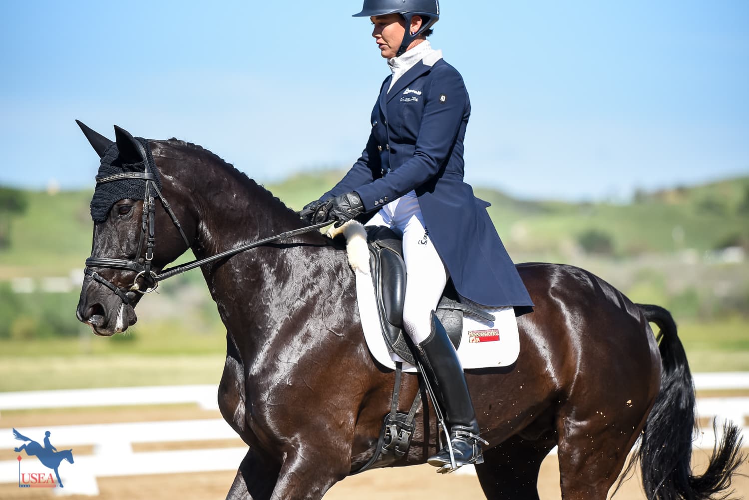 Meg Pellegrini and RF Eloquence (Contender x D-Ginger), her own 14-year-old Holsteiner gelding, slid into second place as the final ride of the day just 4.1 points behind Billys and Caletina on a score of 29.8. Alexis Helffrich and Rose Sullivan’s S Crème de la Crème SE (Claire de Lune SE x Zathalida SE), a 7-year-old Belgian Warmblood, round out the top three in the CCI2*-L on a score of 31.2.