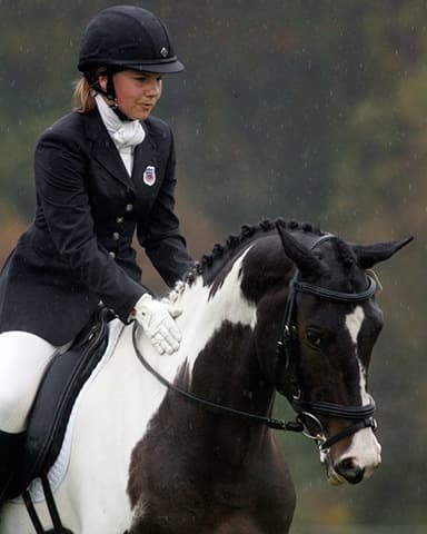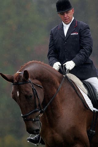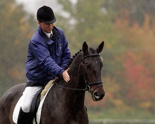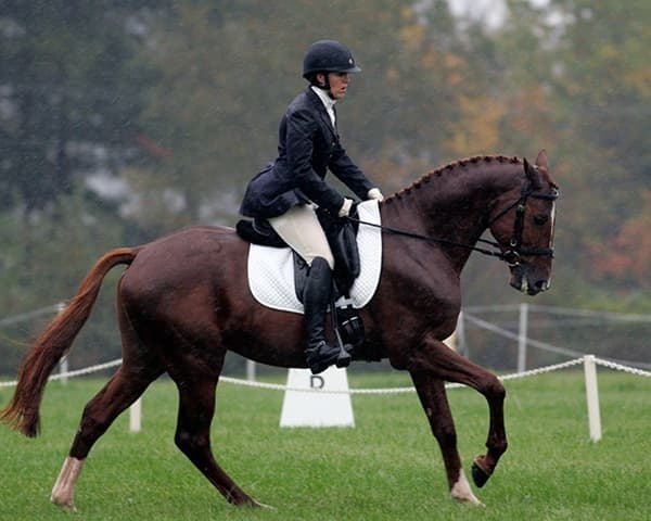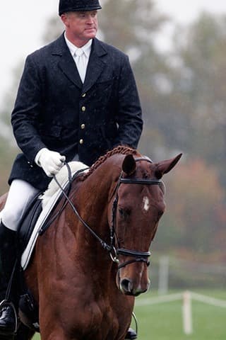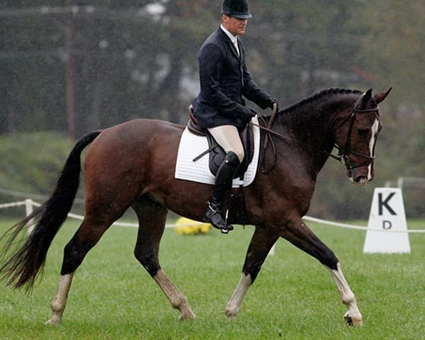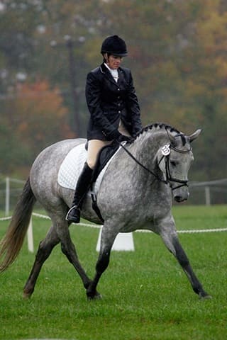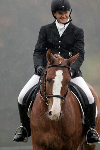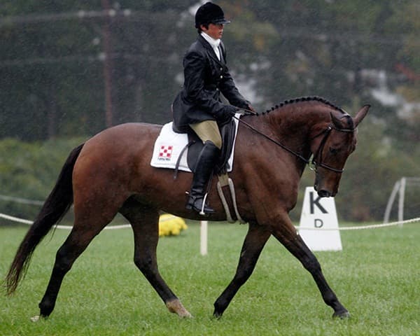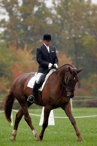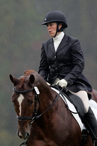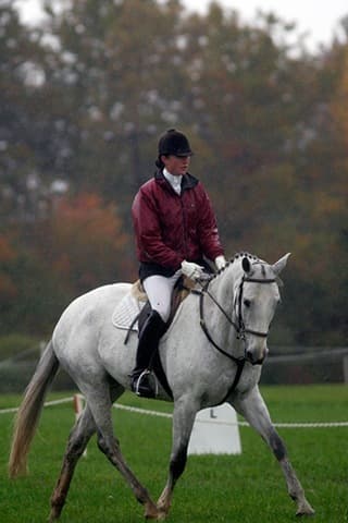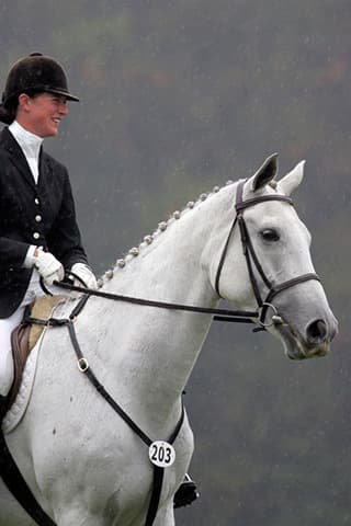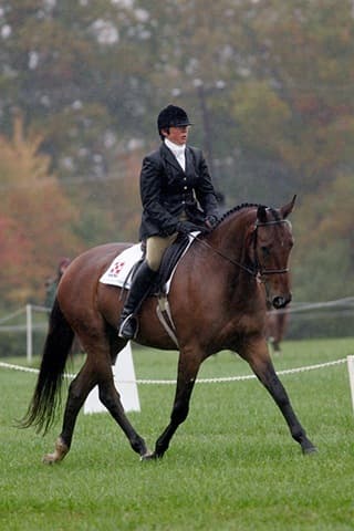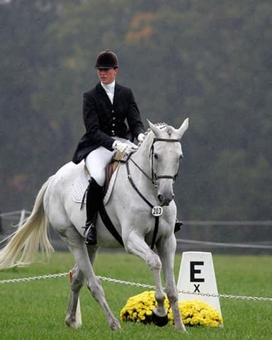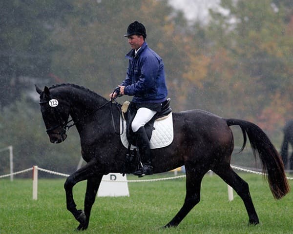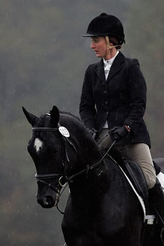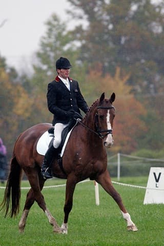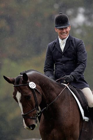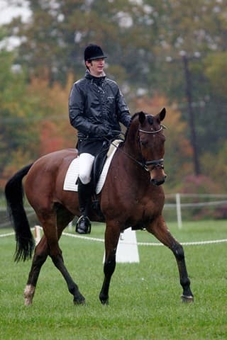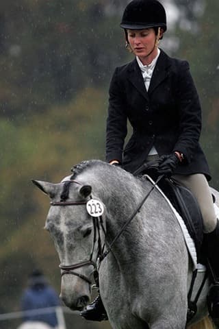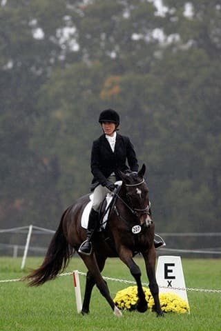 The young stars of the future took the stage today in the first day of the 2009 Spalding Labs/USEA Young Event Horse East Coast Championships at Fair Hill International in Elkton, MD. The promising athletes showed confidence and poise beyond their years as they performed beautifully in the dressage and conformation phases of the competition, all the while roughing it against the elements. Standing in first and second place in the four-year-old division is Leslie Law, riding Terry Smith’s Dresden Hit (pictured left) to top of the division, followed by Tim and Cheryl Holekamp’s Kalamata. Kurt Martin and Master Frisky, owned by Charlotte Hogg, are leading the five-year-old division, with Kim Severson and Eileen Kenney’s Mighty Himself close behind. The championships will wrap up with the jumping portion, the most important phase of the competition. Day 1 Results. Josh Walker photos.