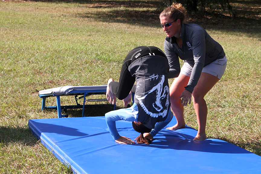“It’s not just learning how to fall, it’s a defensive riding issue,” said Warrington. “Emergency dismounts are something we practice and go over and talk about during our clinics. It’s not just rotational falls. It’s not just tuck and roll. It’s a full on 8-hour seminar.”
