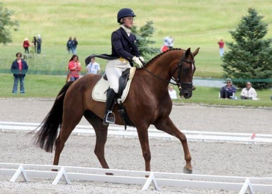 Karen O’Connor and the Dutch Warmblood/Thoroughbred mare Veronica, owned by Team Rebecca LLC, had a foot-perfect test at high noon to lead the Advanced division with a 27.0—this is the mare’s first event at this level. Her fellow East Coast comrade Phillip Dutton is seated second with Ben, a big-moving Holsteiner gelding also owned by the Broussards.