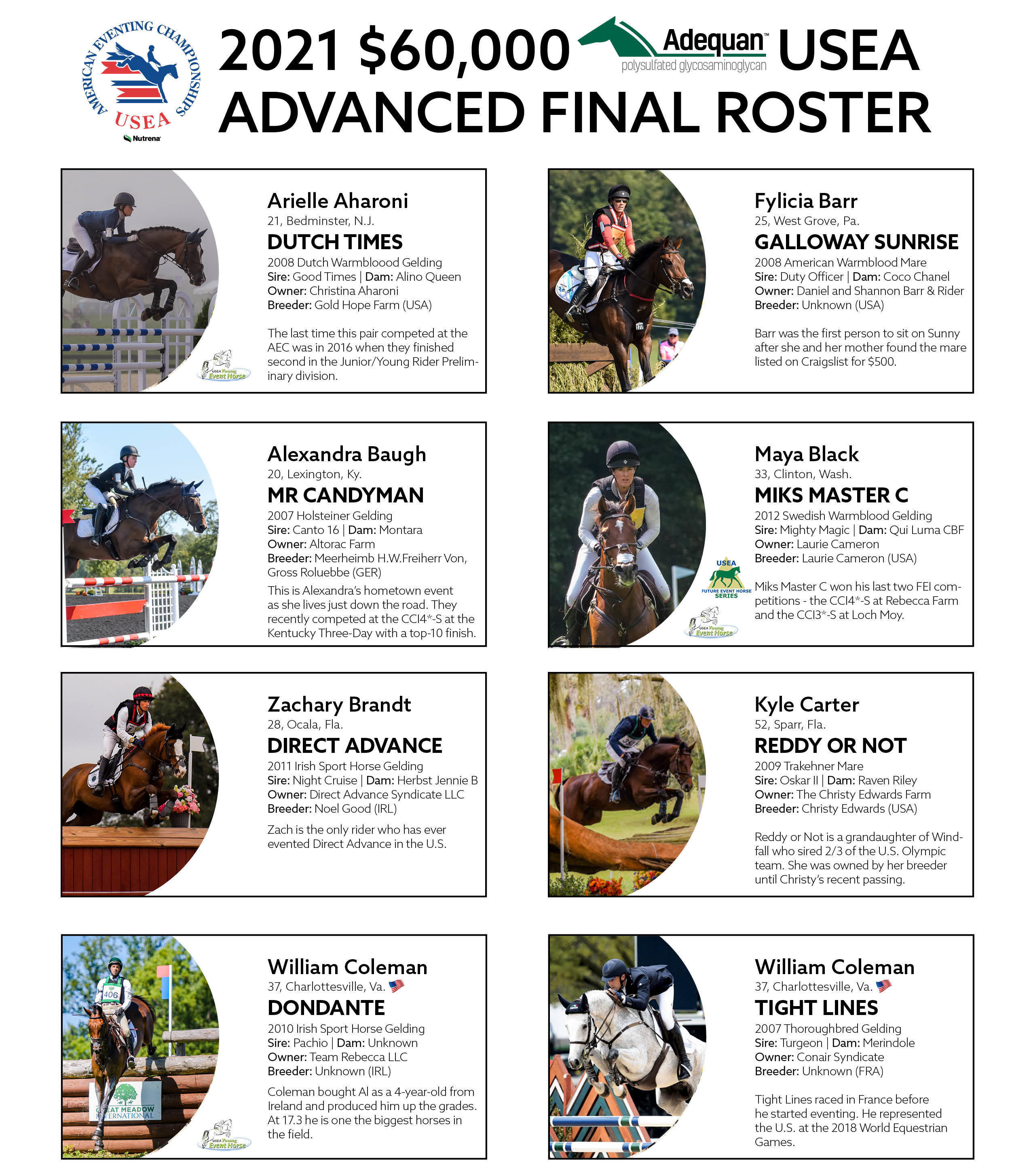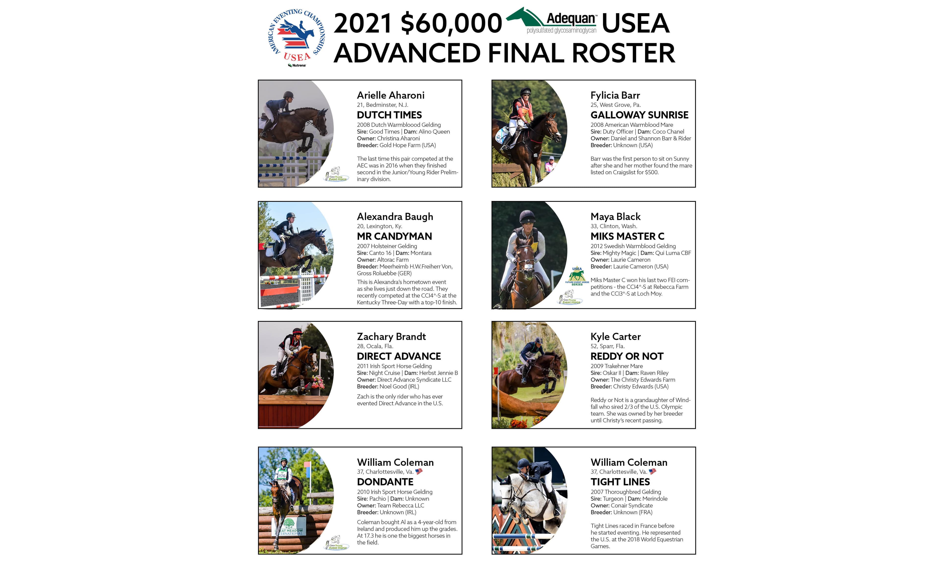 Meet the $60,000 Adequan® USEA Advanced Final Competitors: