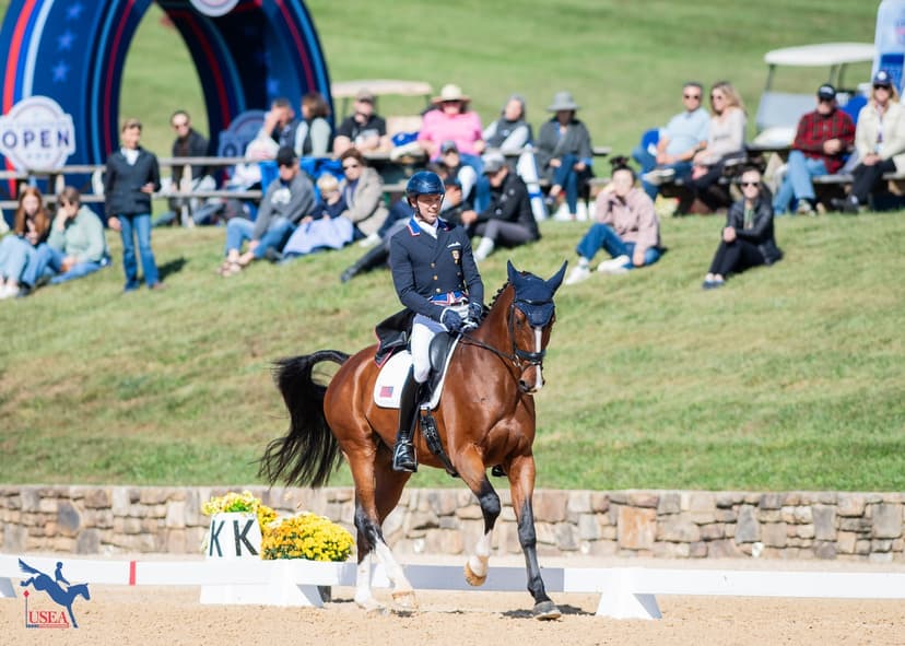 The dressage phase of the US Equestrian Open Eventing Final CCI4*-L concluded on Friday at Morven Park International Equestrian Center. 16 horse-and-athlete combinations took their turn down the centerline, making up the second half of the 30 total starters of the US Equestrian Open Eventing Fina...