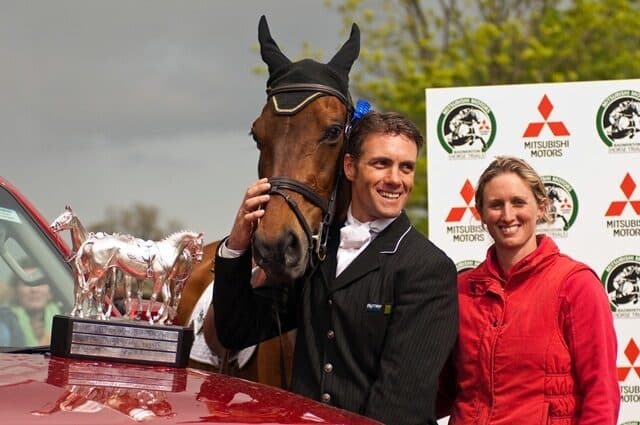 Australian Paul Tapner and Inonothing maintained their overnight lead and concluded their weekend with a double-clear round at the 2010 Mitsubishi Motors Badminton Horse Trials in Gloucestershire, England. Tapner and the 14-year-old gelding, owned by Jennie Waaler, enjoyed their moment in the limelight with his wife and groom Georgina Tapner during this afternoon’s award ceremony. Full results. StockImageServices.com photo.