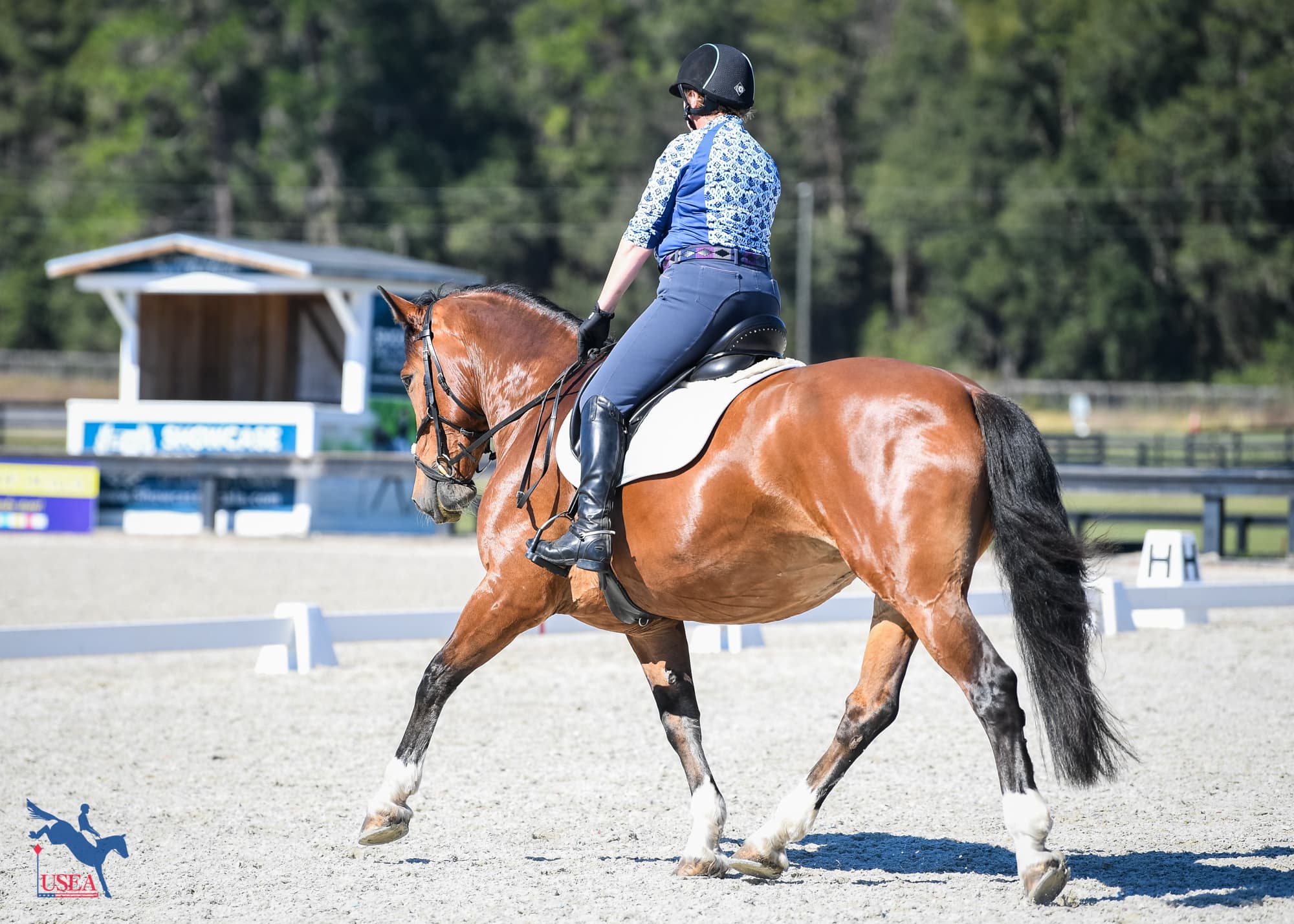 Giesselman expressed some concern that “Vinny” likes to buck in canter and can be unpredictable, especially at shows and when working on flying changes, and that she can panic.