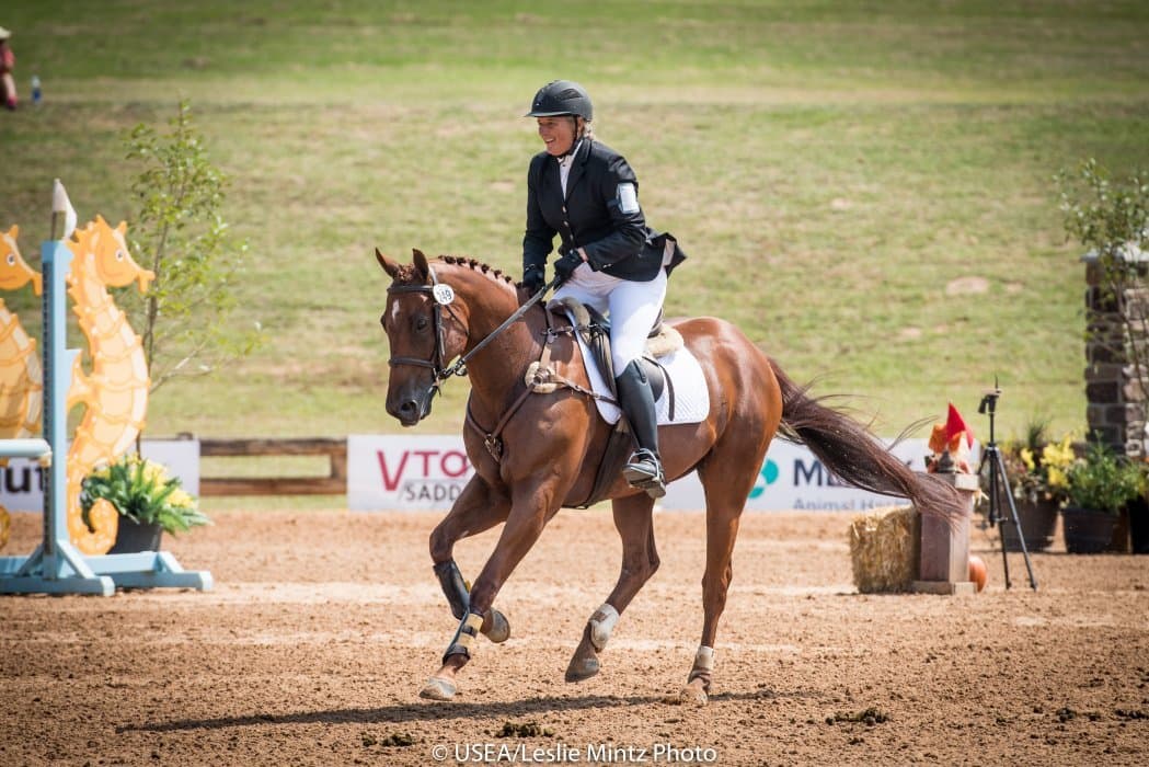 Carole Schaff piloted her own 6-year-old Appendix Quarter Horse, Company Spending around a clear show jumping round to move up the ranks from fourth to first place in the USEA Novice Amateur division. Schaff reflects on her round, “She went right into the ring and took me to all the jumps. She was just great, and I couldn’t ask for a better horse.”