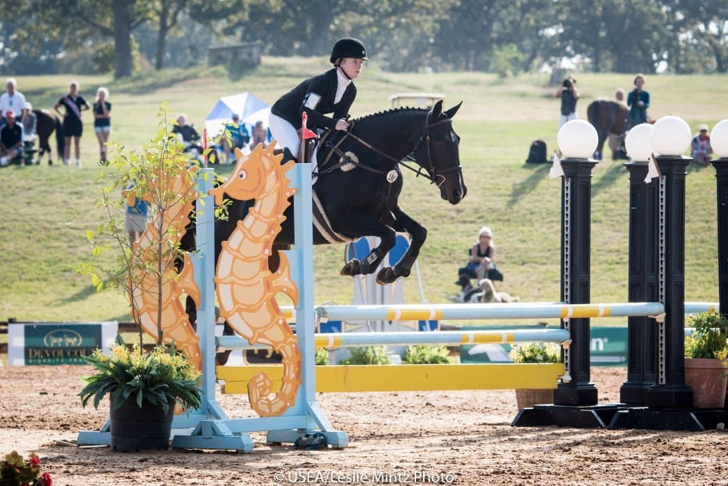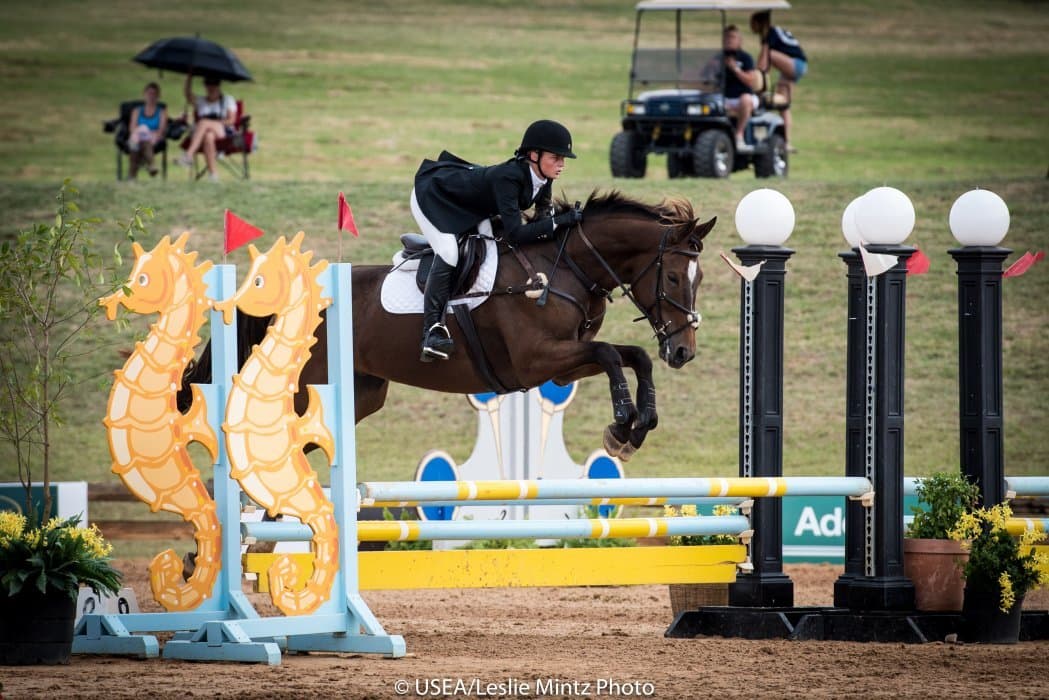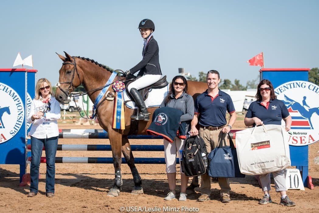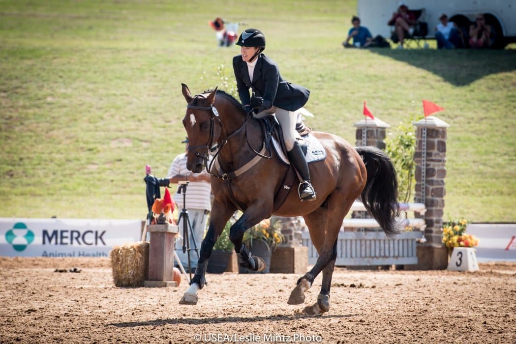 Mckenzie Scroggins took home the championship title in the Broadstone Junior Beginner Novice 14 and Under division aboard her own 9-year-old Thoroughbred, ChaCha. Scroggins jumped a critical double clear show jumping round to move-up from second to first place. “My ride today was wonderful and ChaCha was great as usual. We’ve been working hard all season, 6 days a week to get here. I’ve had such a great experience and it’s one that I’ll always remember.”