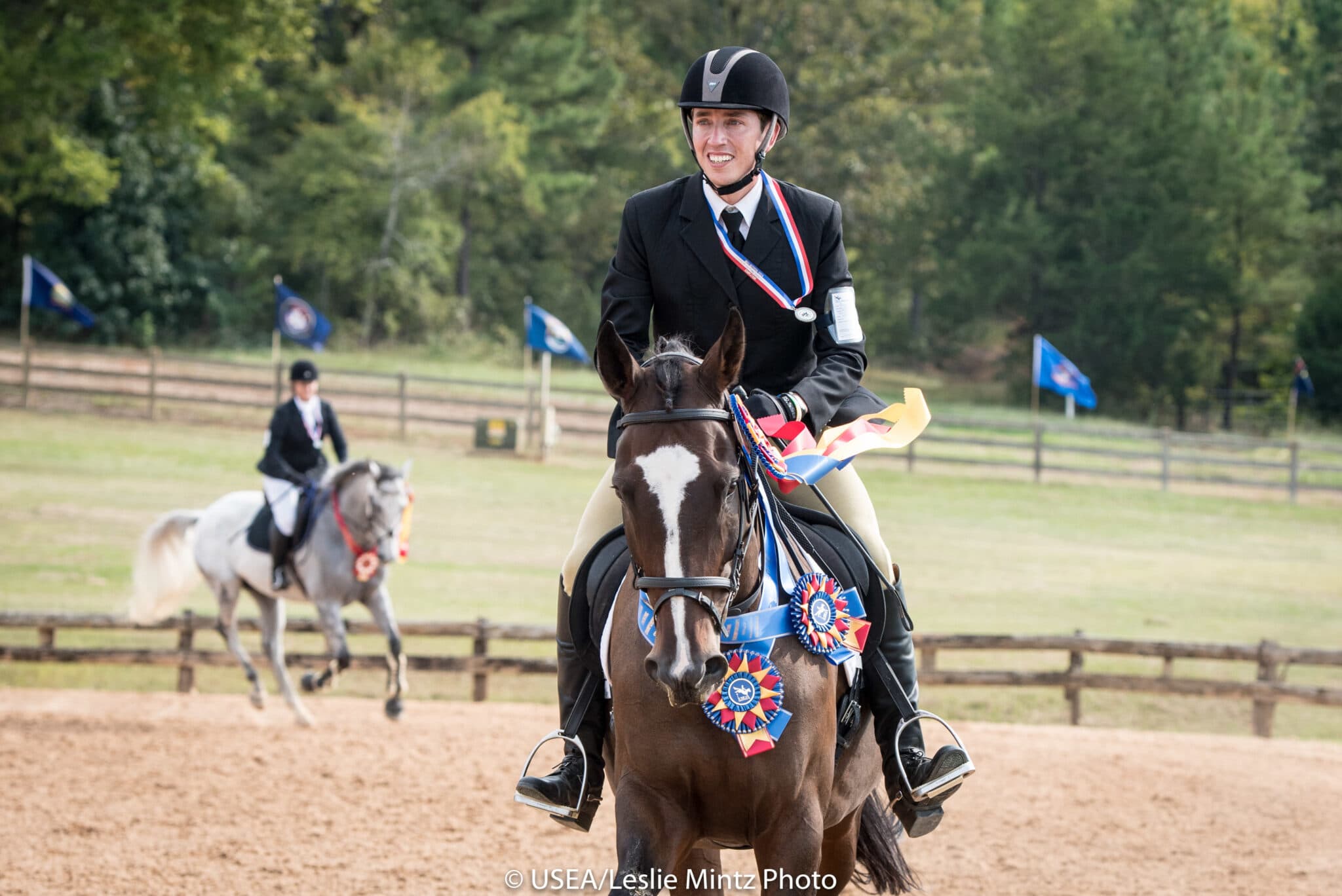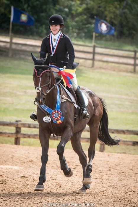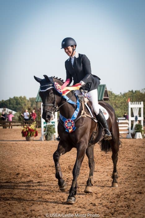 McKinsey Wickman didn’t have a rail to spare as she entered the show jumping ring aboard her own Dassett Profile, a 7-year-old Irish Sport Horse. A nail biting double clear show jumping round resulted in Wickman earning the championship title in the Novice Junior division. “I was amazed with my horse. He was absolutely phenomenal. I made a few mistakes, but he saved my butt out there,” Wickman says. Wickman is looking forward to a Training level move-up with Dassett Profile and mentions that her win this weekend proves that they’re ready for the next challenge.