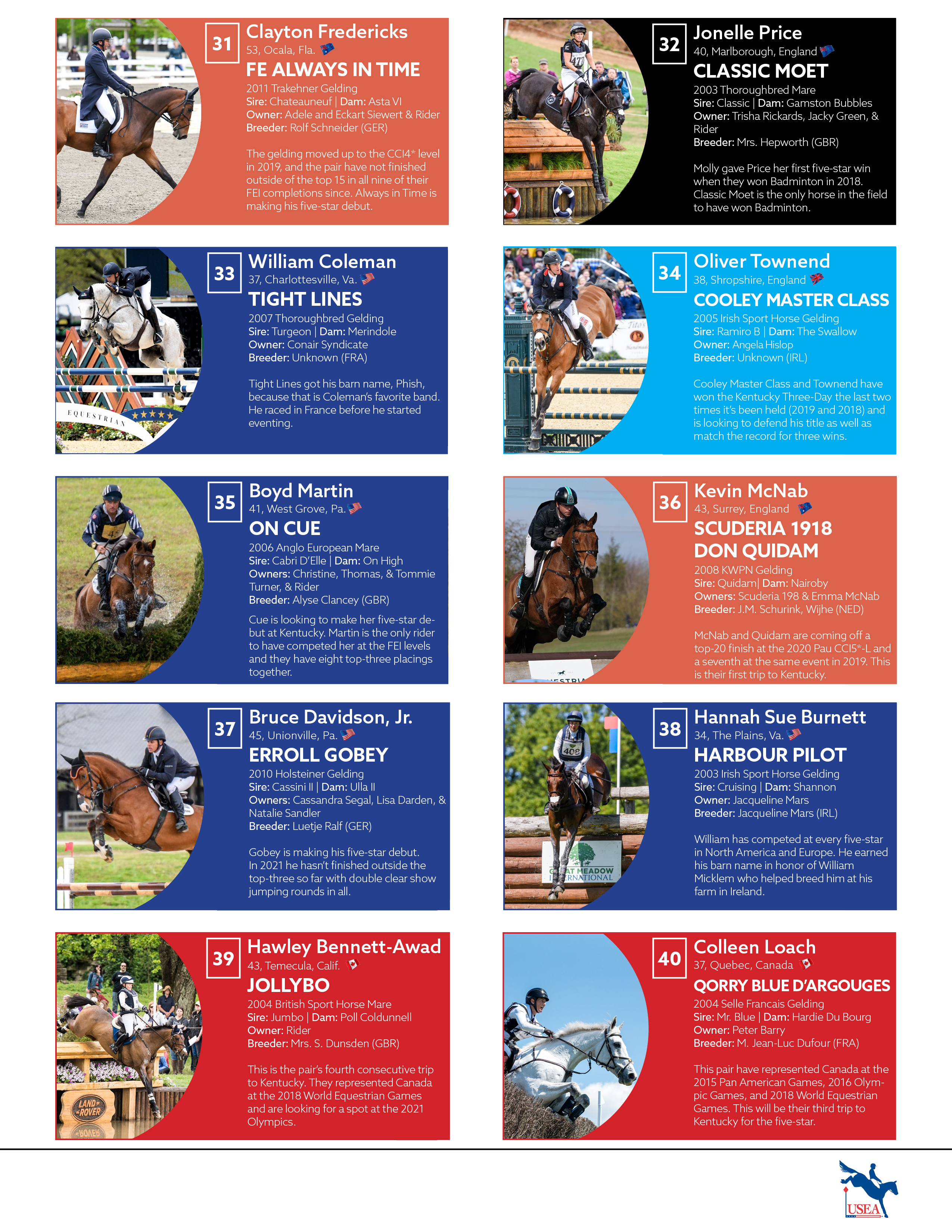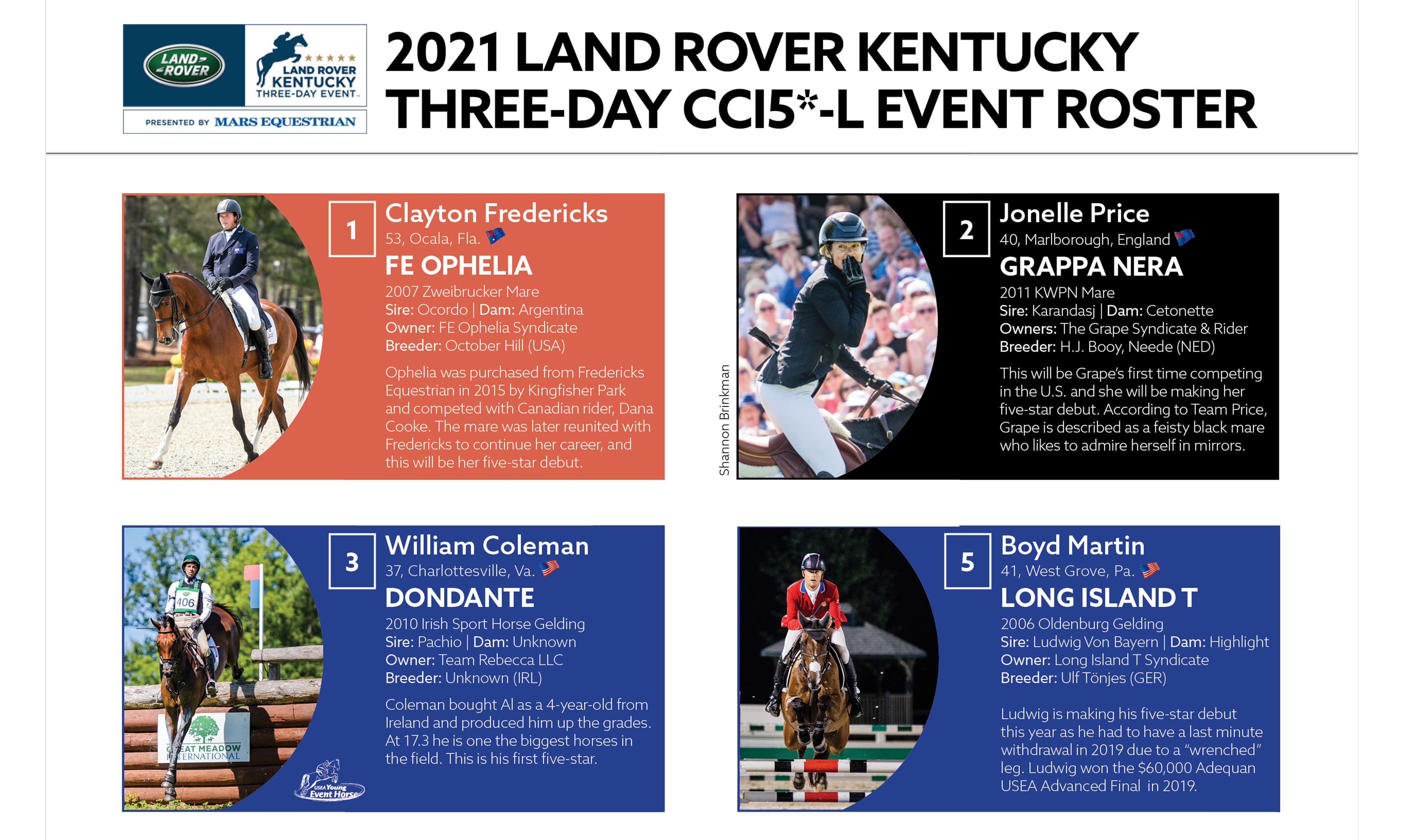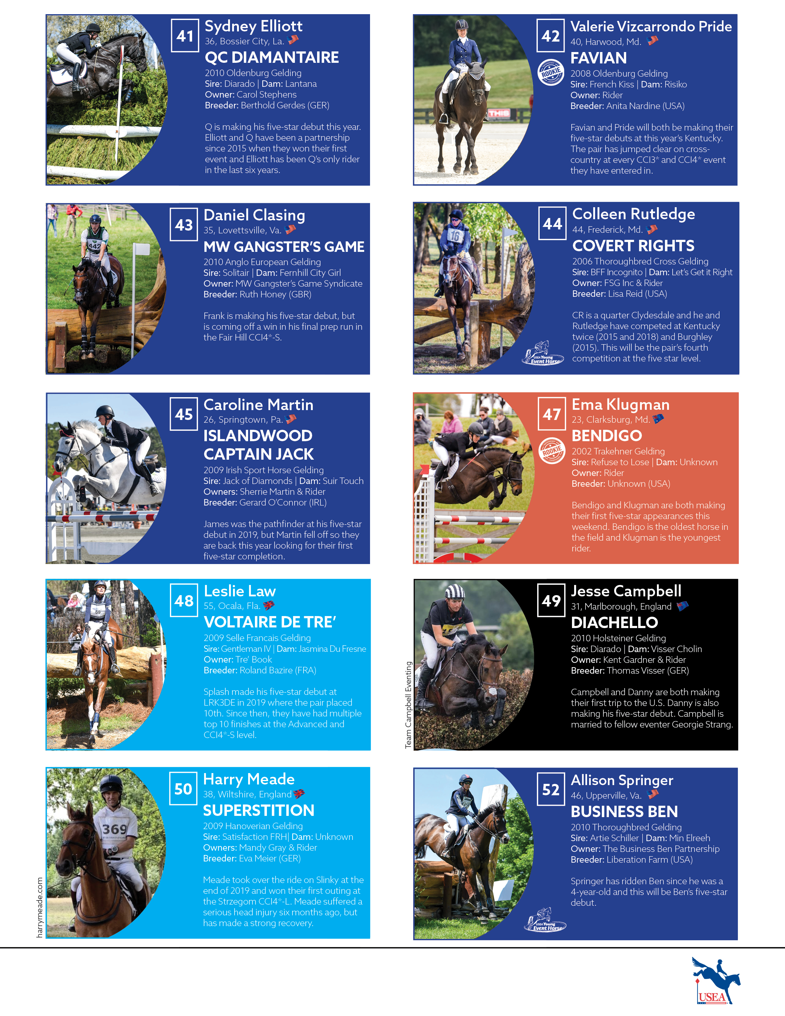 To help you get to know this year’s field of competitors, we’ve collected data on every horse and rider as well as fun facts about the pairs to get you excited for this weekend’s competition. Click to check out the USEA’s 2021 LRK3DE Roster!