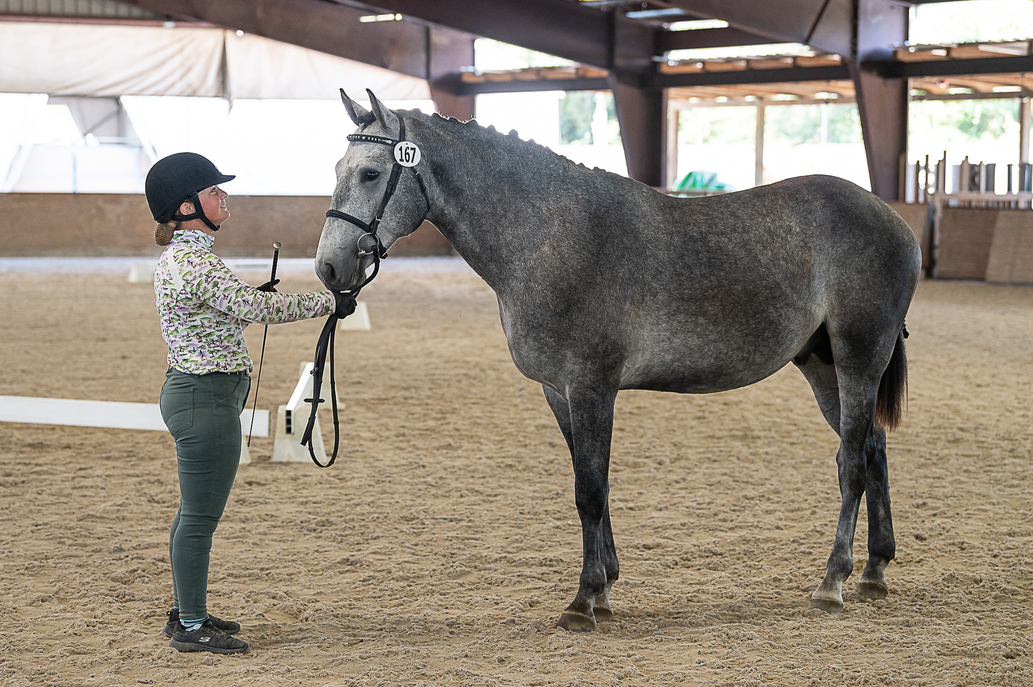Coming out on top to be crowned the Three-Year-Old Overall and Three-Year-old Colt Champion was the Irish Draught Sport Horse gelding Gatsby’s Touch of Chrome (Gatsby x MFF Touch of Dutch), owned and bred by Amy Clemmons, DVM. “Guinness” is no stranger to the USEA FEH Central Championships, having won the Two-Year-Old Championship in 2021 and been dubbed the Reserve Overall Champion the same year. Guinness also recently passed his inspection for the Irish Draught Horse Society of North America, with praise from the inspectors who flew in from Ireland to host an inspection tour in the U.S. last month. Quite the cheeky boy, Guinness spent the entire liberty session of his arena time trying to break into the jump chute, where he then excelled once the chute was officially opened. Owner Clemmons says she plans to take “Guinness the Menace” on the Young Event Horse route in 2023 since she has already been lightly trail riding him and introducing him to many things on the ground in order to keep his busy mind occupied.
