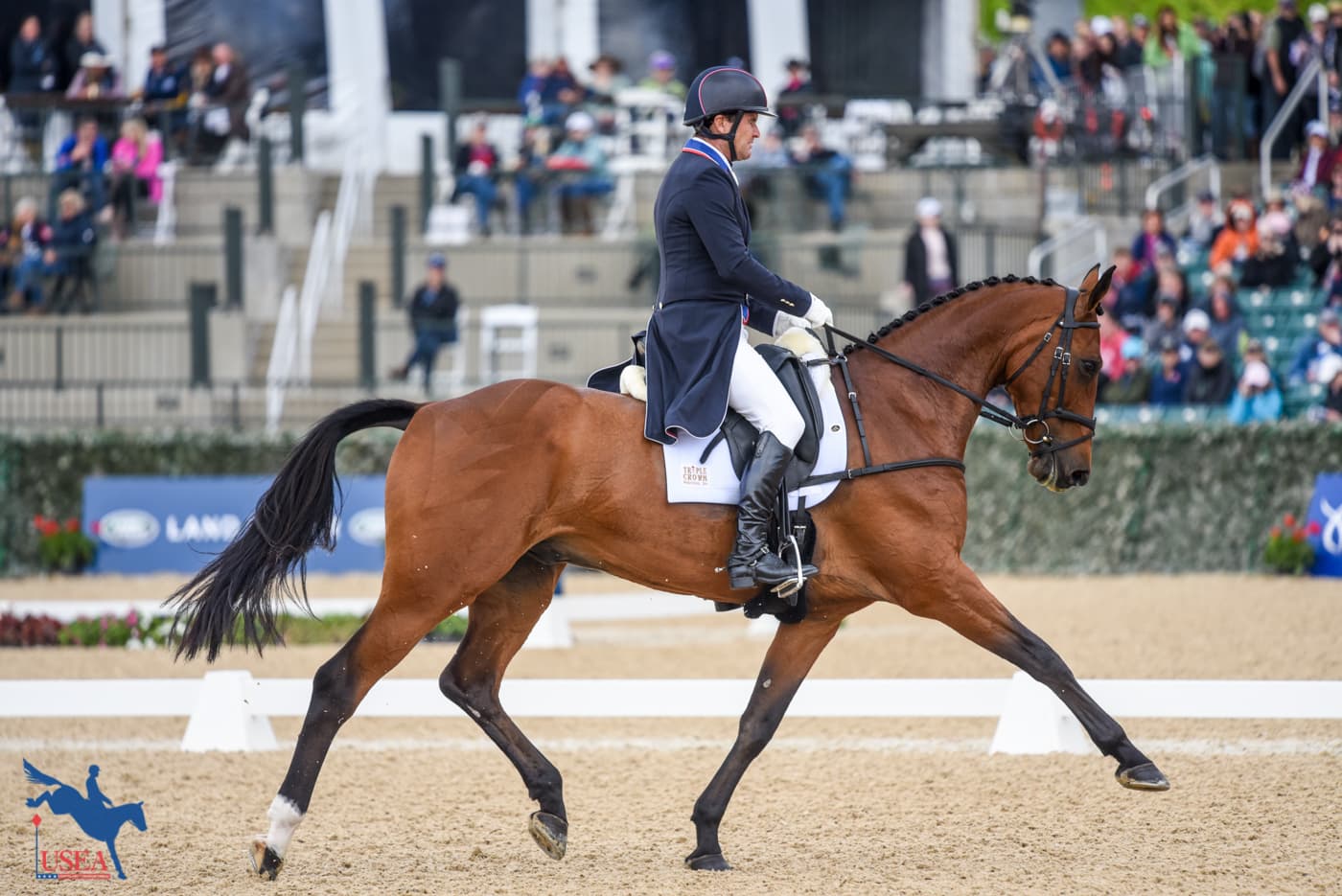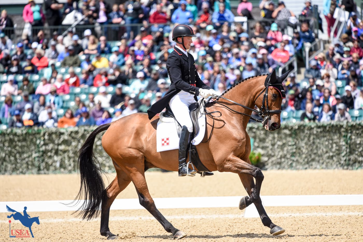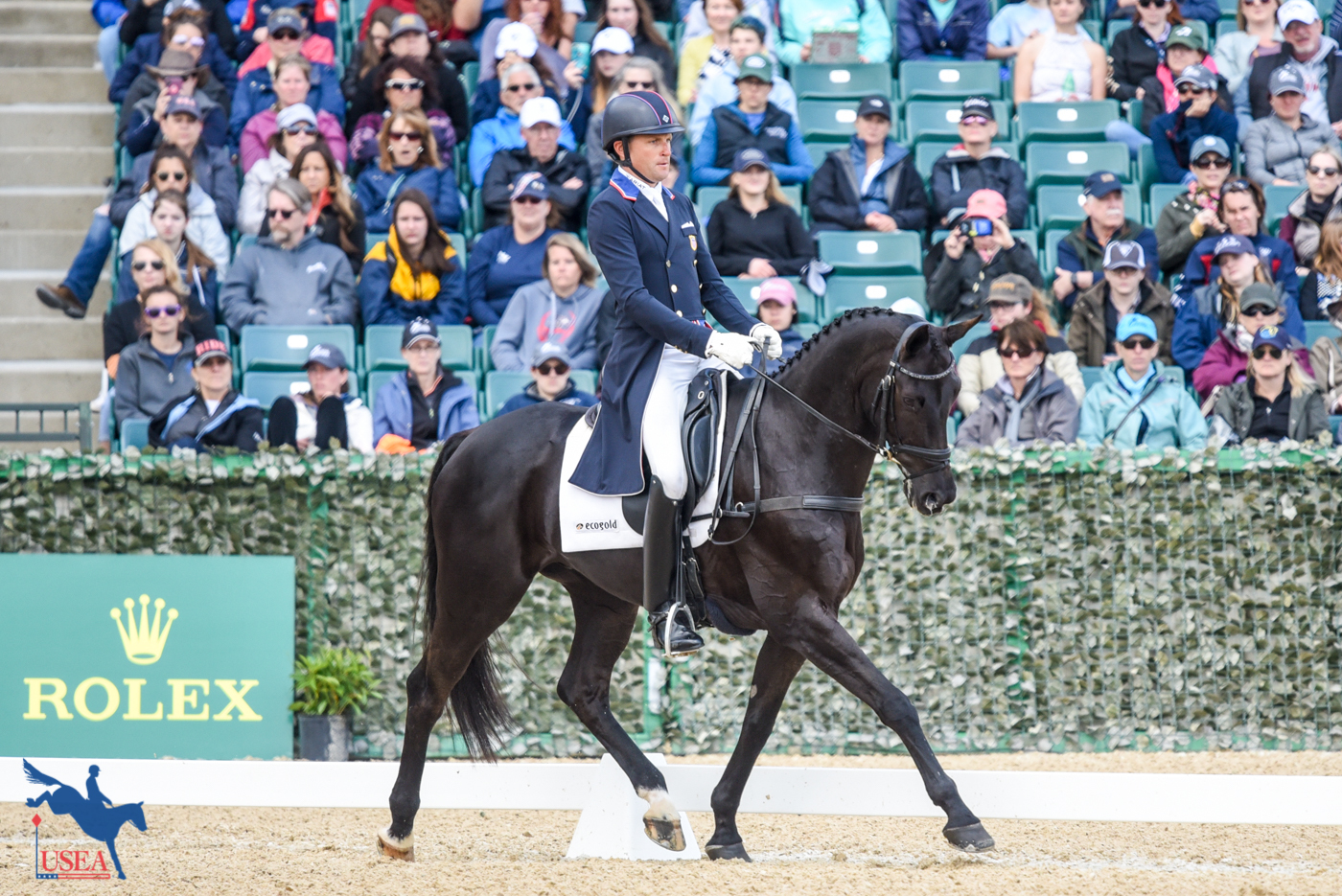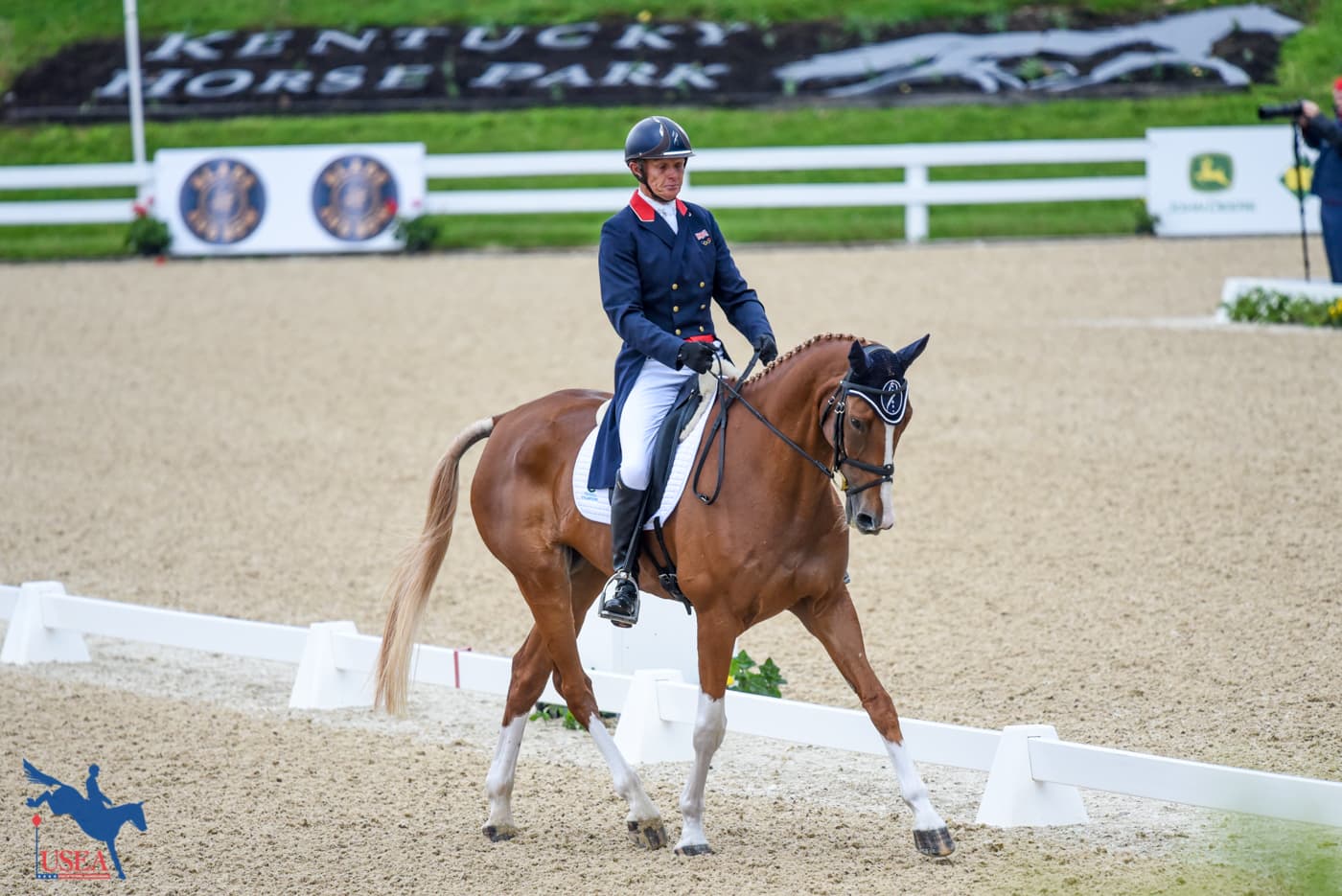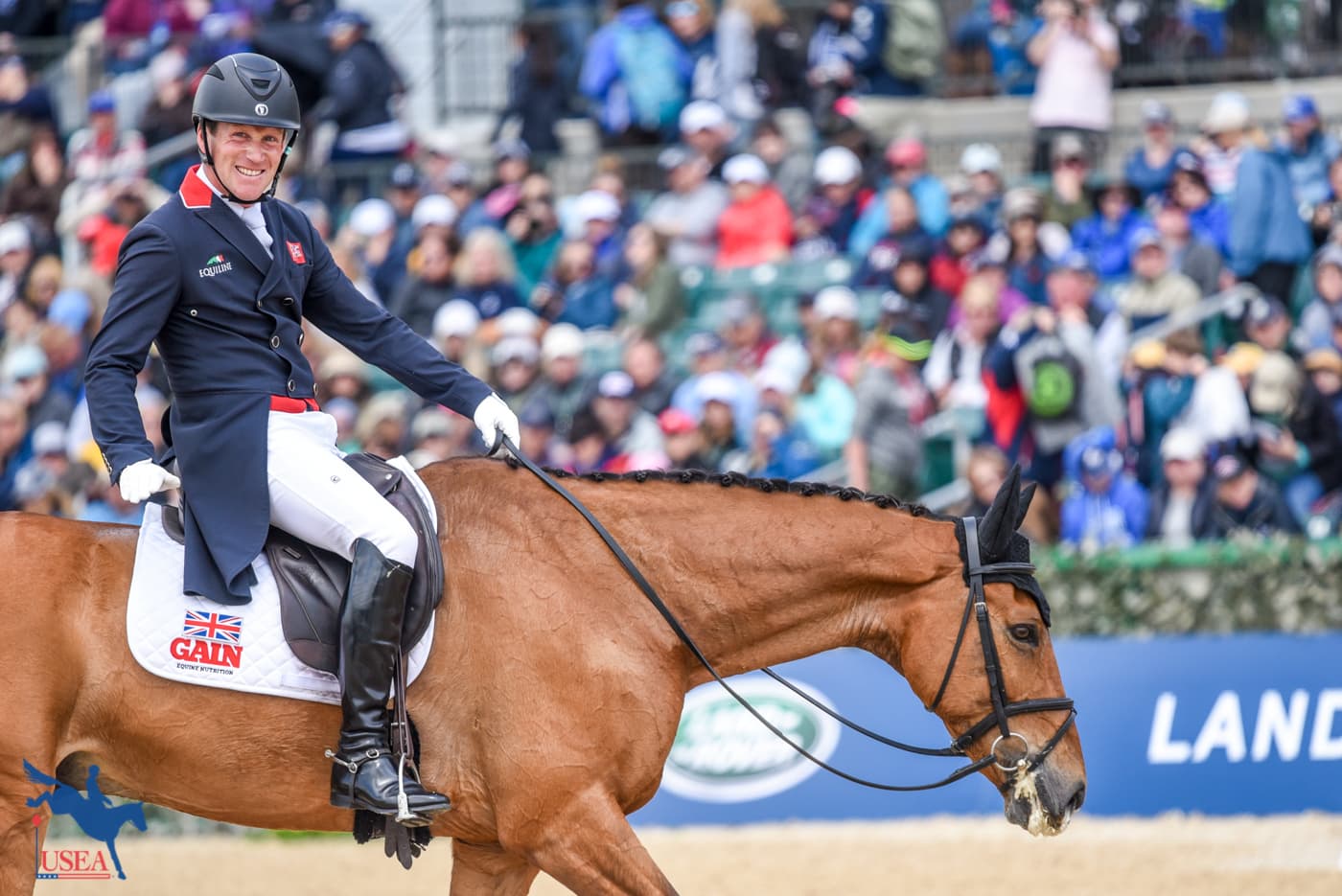 Multiple heavy hitters cantered into the dressage arena today at the 2019 Land Rover Kentucky Three-Day Event, shaking up the overnight standings. Great Britain’s Piggy French dominated the morning session, stealing the top position with an impressive 27.1, but it was the 2018 defending champion who took over the top spot after the dust settled, topping French’s score by three points.