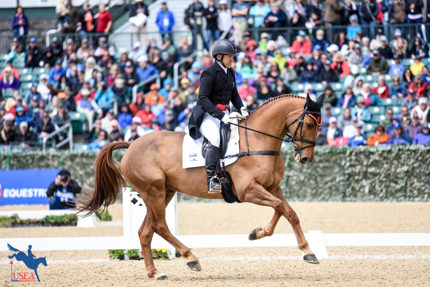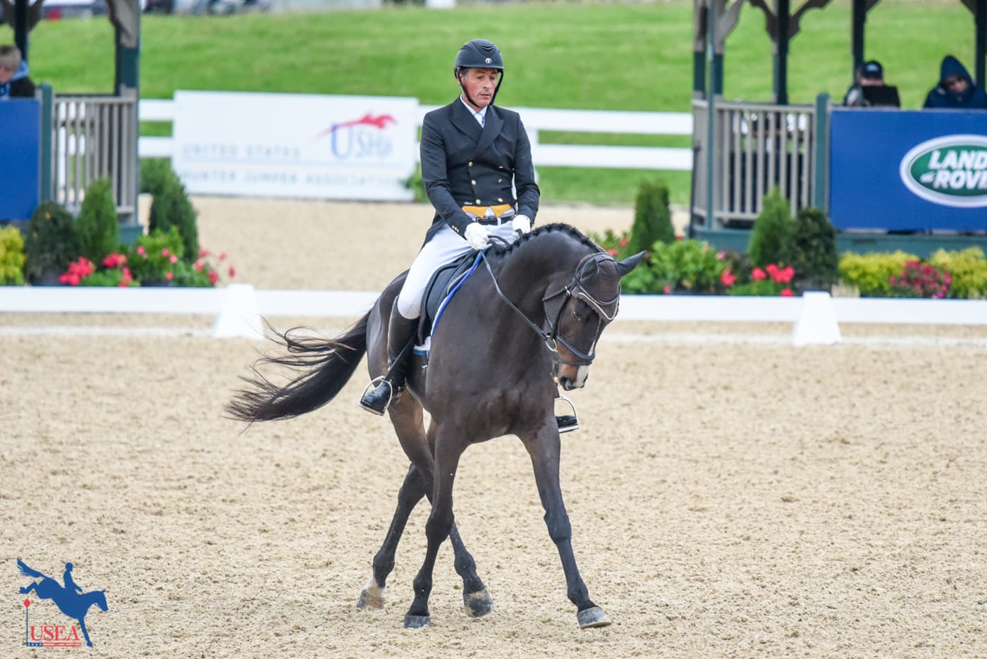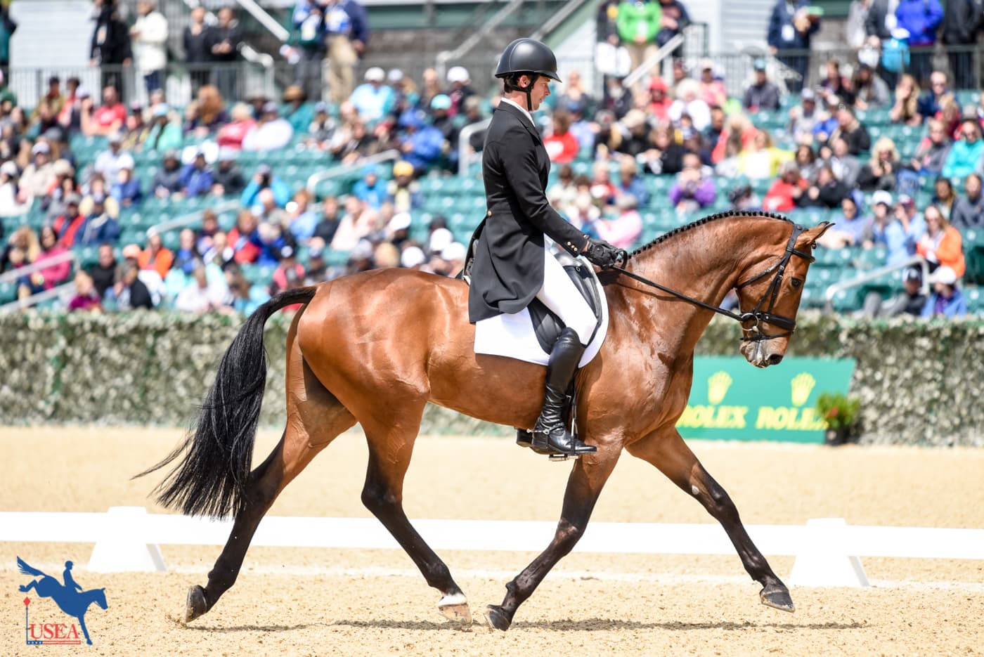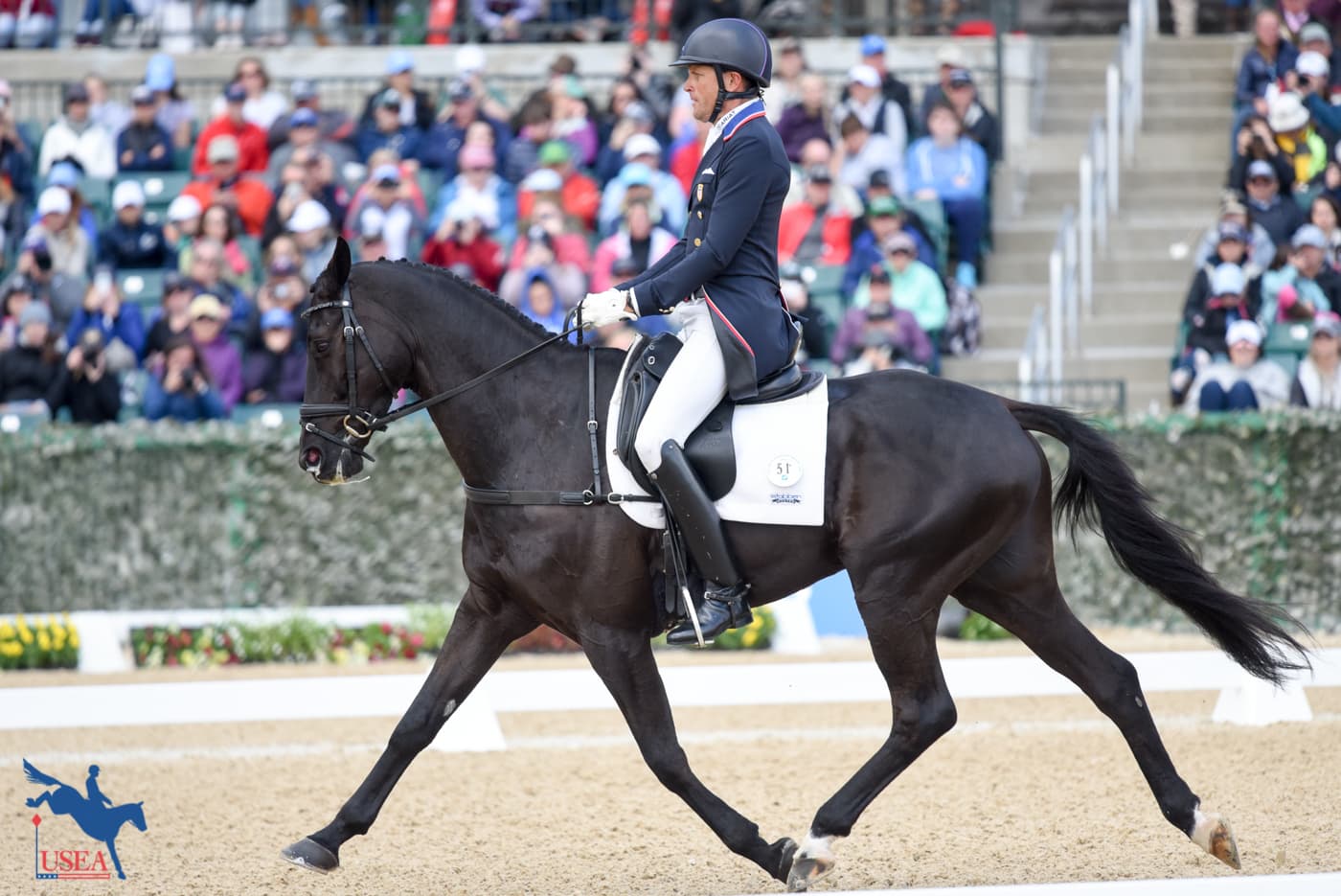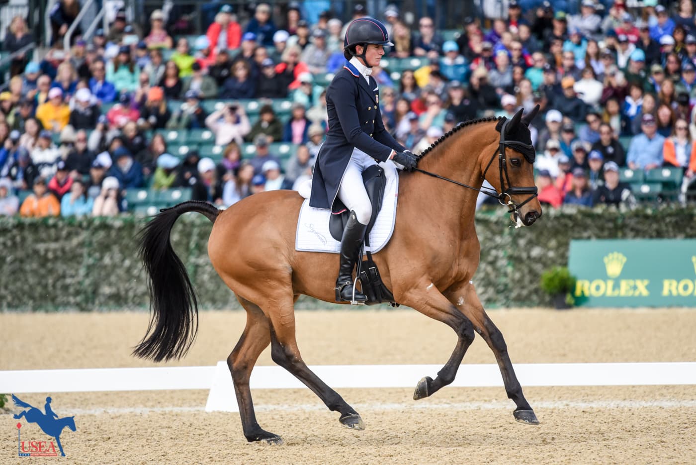 Multiple heavy hitters cantered into the dressage arena today at the 2019 Land Rover Kentucky Three-Day Event, shaking up the overnight standings. Great Britain’s Piggy French dominated the morning session, stealing the top position with an impressive 27.1, but it was the 2018 defending champion who took over the top spot after the dust settled, topping French’s score by three points.