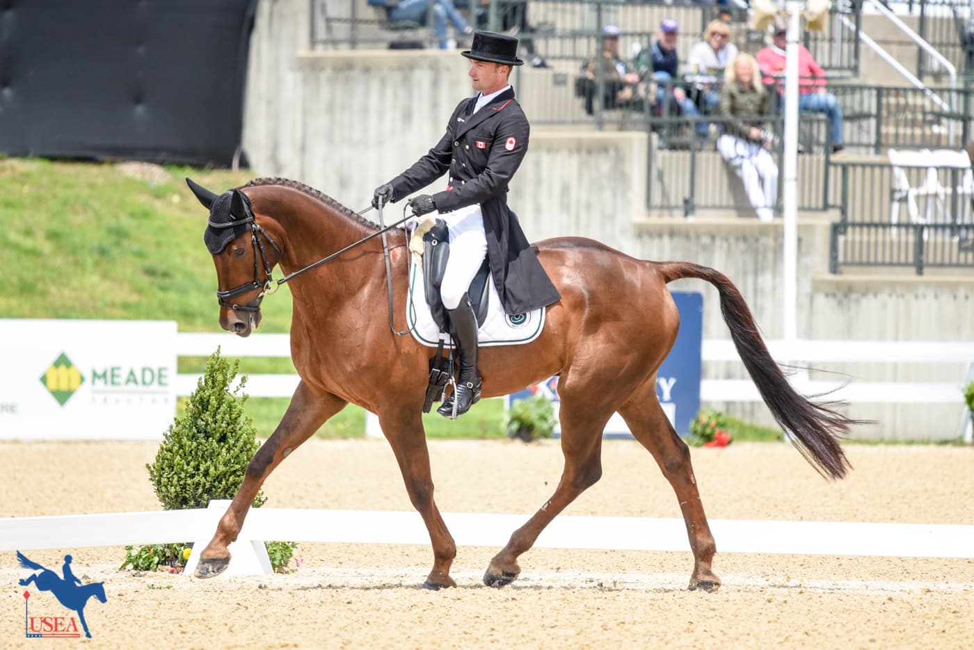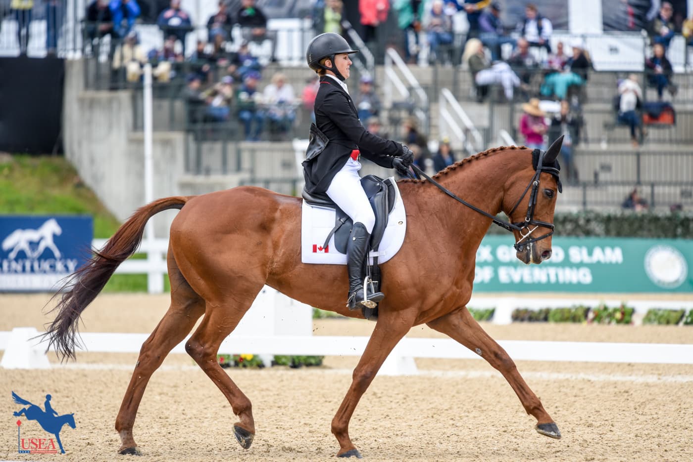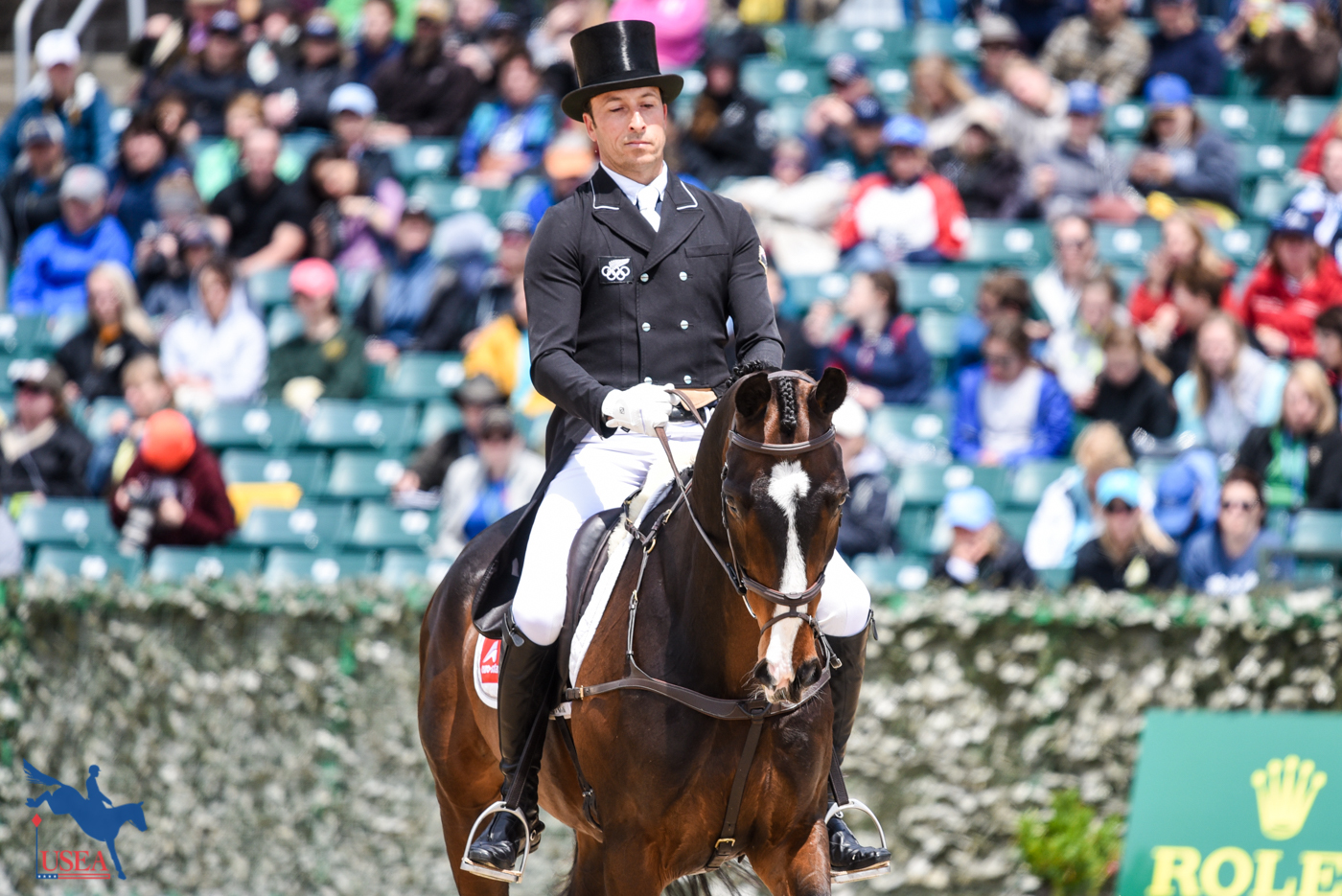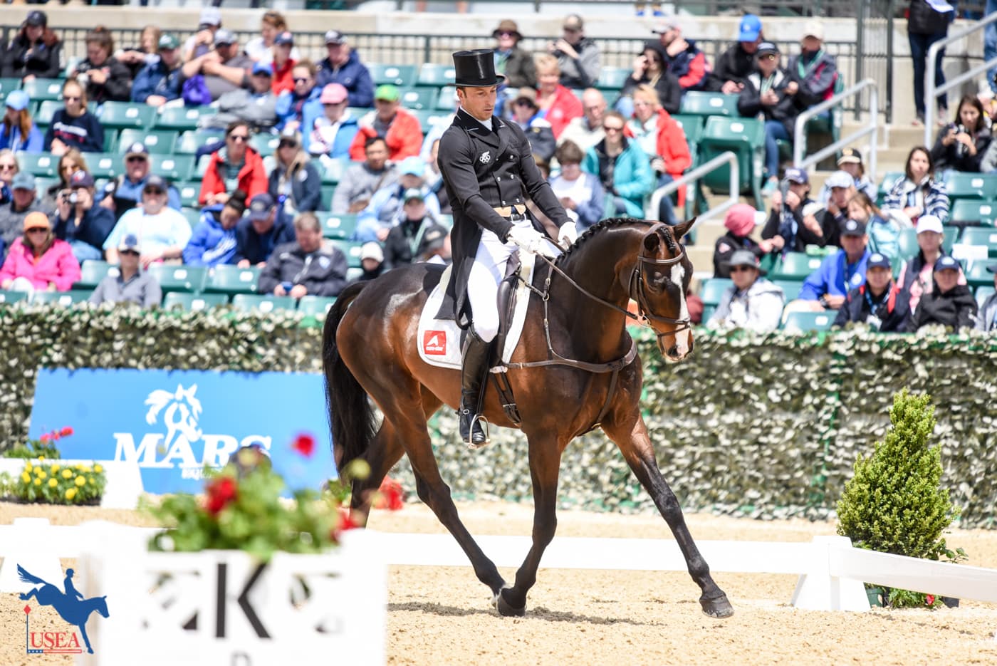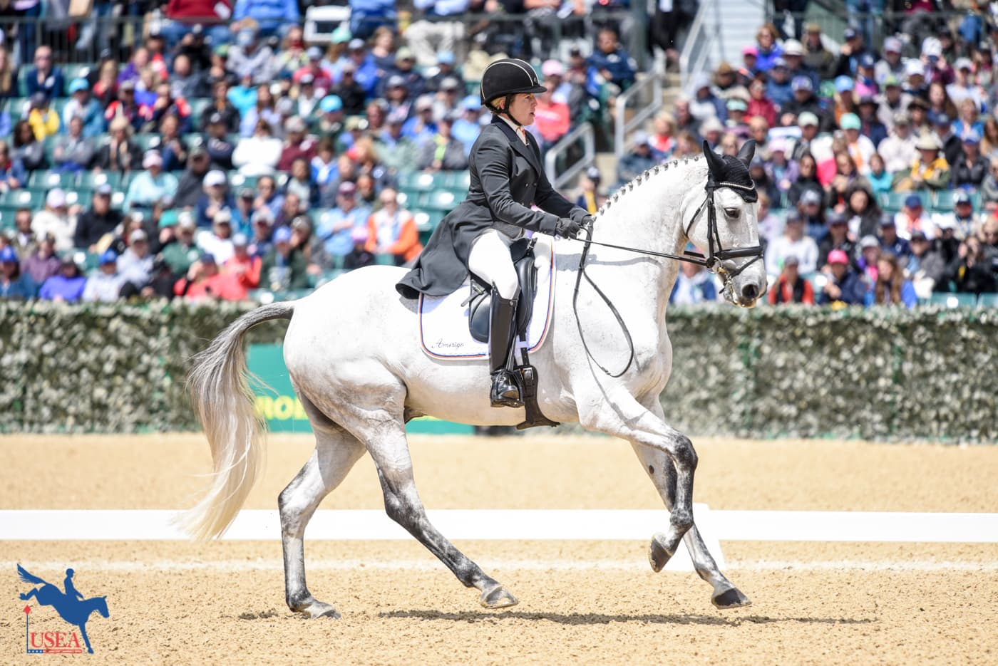 Multiple heavy hitters cantered into the dressage arena today at the 2019 Land Rover Kentucky Three-Day Event, shaking up the overnight standings. Great Britain’s Piggy French dominated the morning session, stealing the top position with an impressive 27.1, but it was the 2018 defending champion who took over the top spot after the dust settled, topping French’s score by three points.