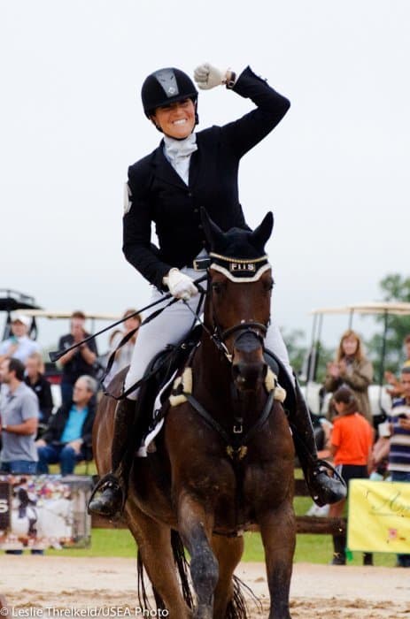 As she cleared the last fence, Laine Ashker raised her fist in victory as she and Anthony Patch officially became the 2013 USEF Advanced Champions, the Adequan USEA Gold Cup Series Champions, and $20,000 richer. Ashker and “Al” put in one of only three double-clear show jumping rounds in the division of 13. She had stated yesterday that show jumping is Al’s best phase and her worst.