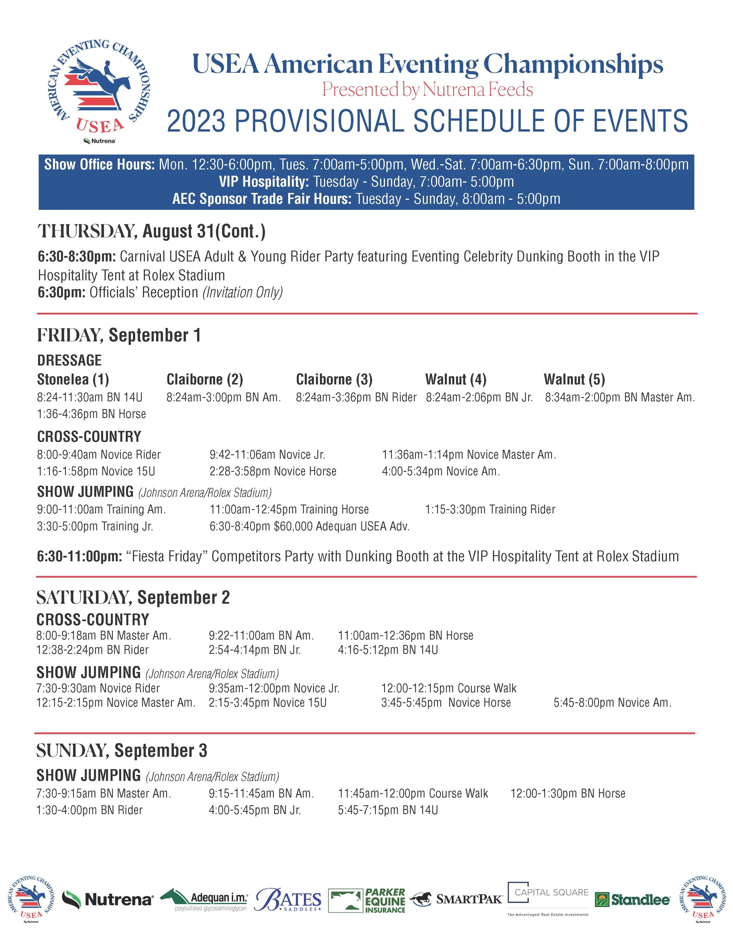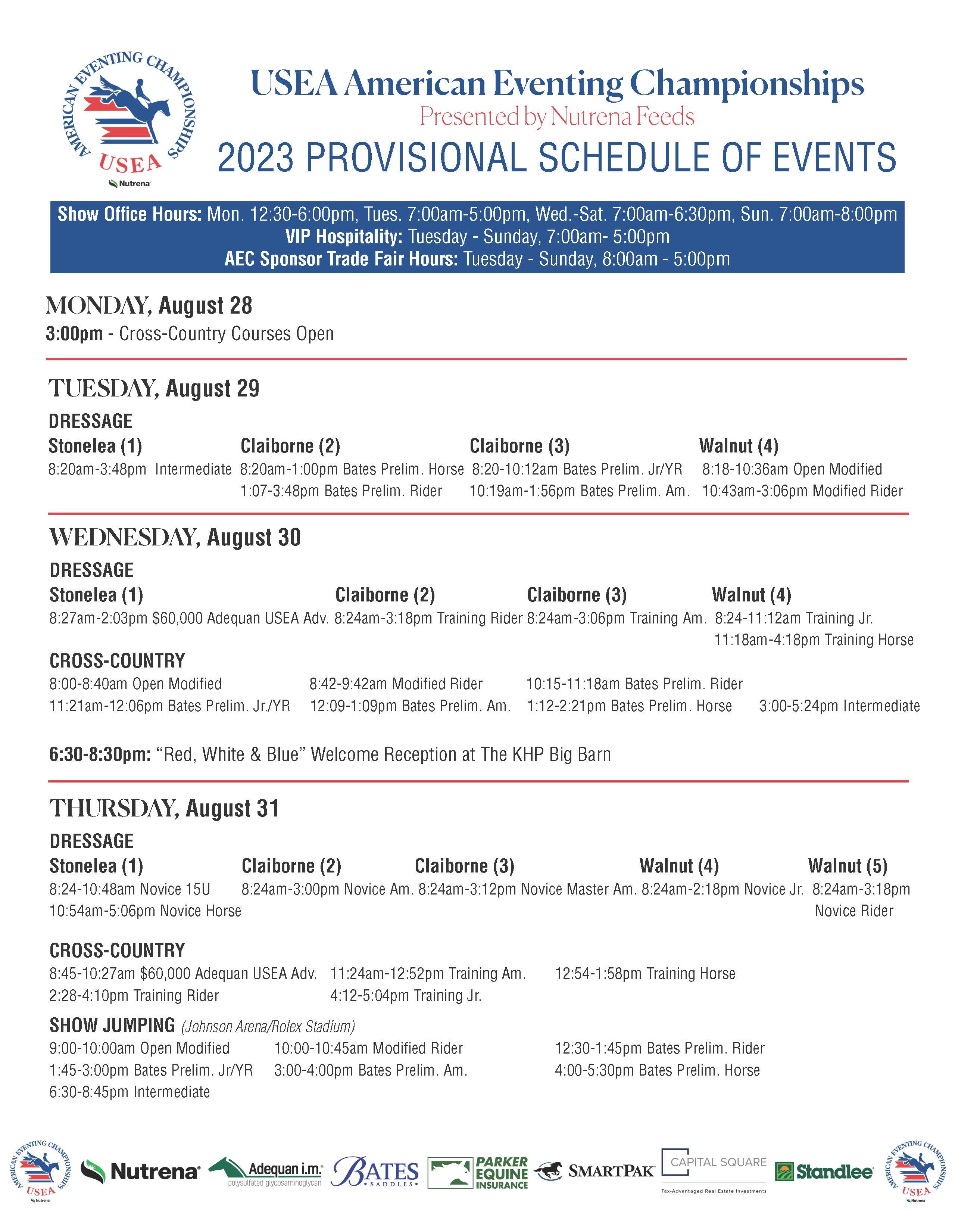 Horse & Country will serve as the Official Livestream of the 2023 AEC. Horse & Country provides all USEA members with a 15% discount on annual memberships. Login to your online services account to access the code and sign up today! The livestream schedule is as follows: