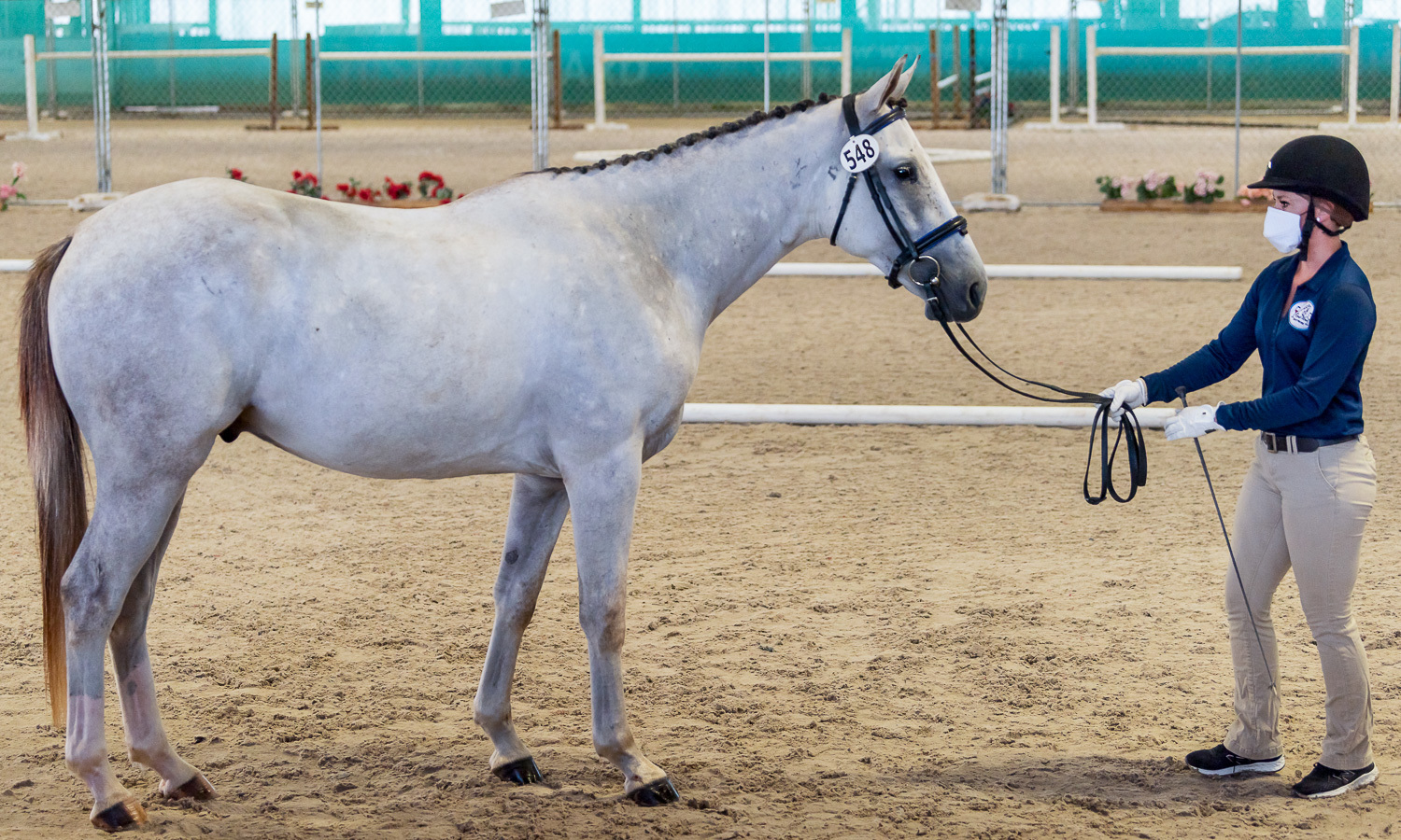 The next division to go was the 2-year-old Championship made up of Robbie Peterson’s two homebreds, Flagmount’s Invincible and Flagmount’s Scandal, who are both out of the Irish Sport Horse stallion Flagmount’s Freedom. Handled by Jackie Ericksen, Flagmount’s Invincible came out on top to win the 2-year-old Championship with a score of 76.4 percent. The Irish Sport Horse gelding, Flagmount’s Scandal (Flagmount’s Freedom x Coaxing Halo), was close behind with a score of 75.1 percent.