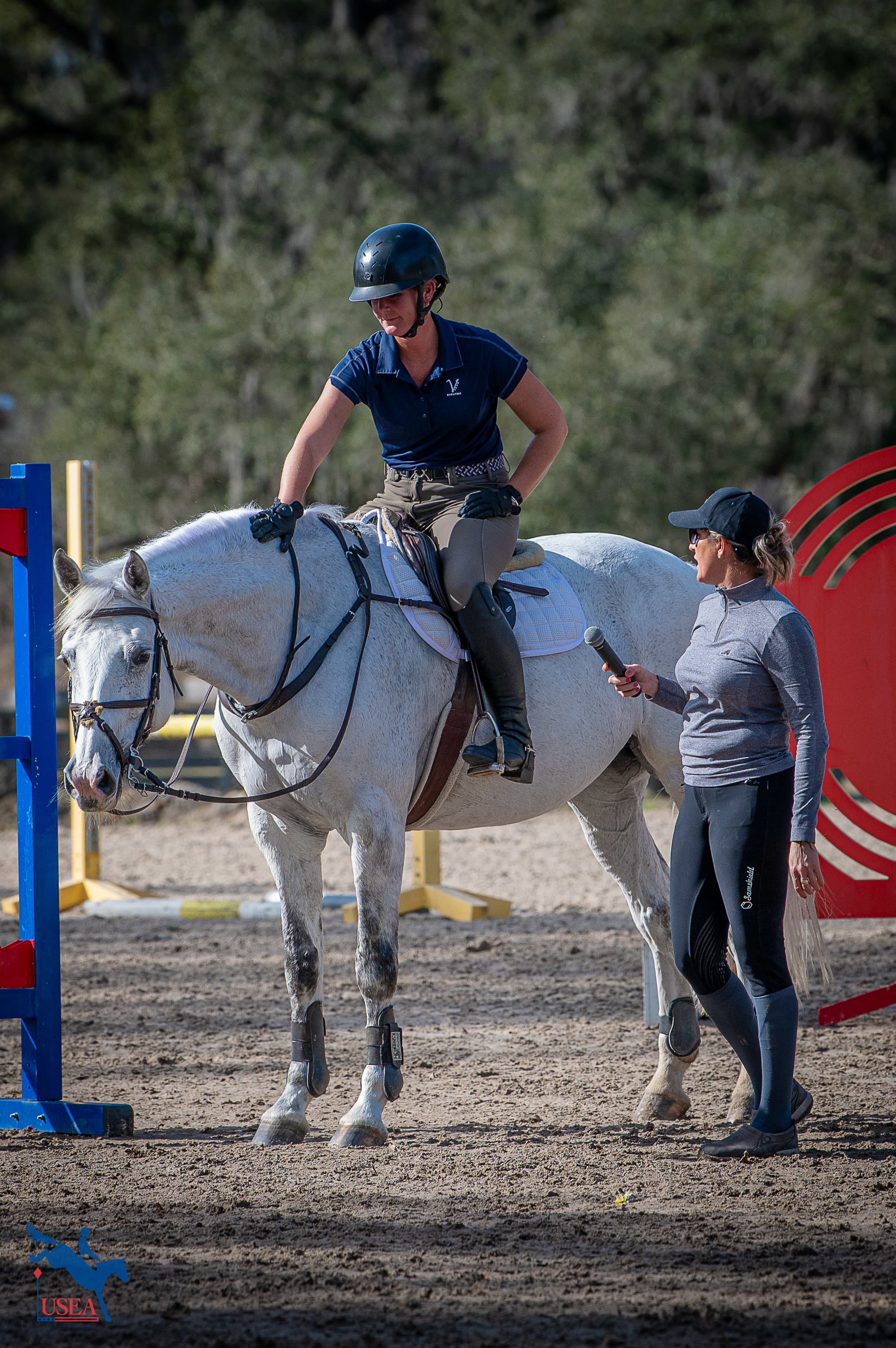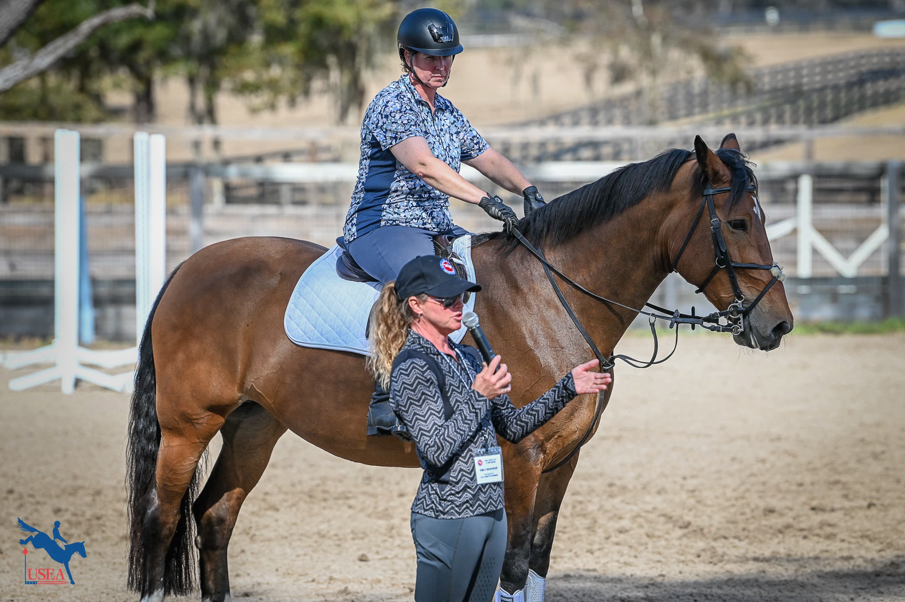 Sport Psychologist Dr. Paul Haefner kickstarted the morning by challenging instructors to think outside of the box when working with their students, responding to several real-life situations that instructors face every day when teaching students of all walks of life. Following his highly interactive session, ECP participants made their way out of the tent and to the ring for an explanation of show jumping concepts that trainers should be prioritizing and communicating to their students in their own programs at home.