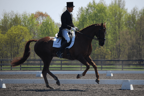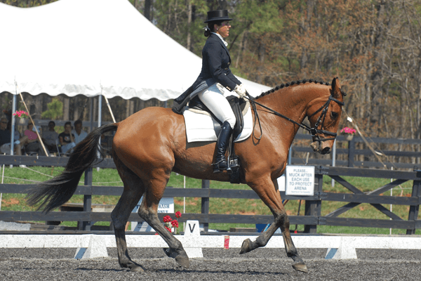The second day of dressage in the Adequan/USEA Gold Cup Advanced Division brought hot weather and even hotter scores. Becky Holder and Courageous Comet scored a dazzling 23.7 to launch them into the lead. Amy Tryon and Leyland joined the trio from yesterday who all scored a 27.3. The four second place riders along with the rest of the division will fight it out tomorrow on the cross-country course to see if they can topple Becky from atop the leaderboard.