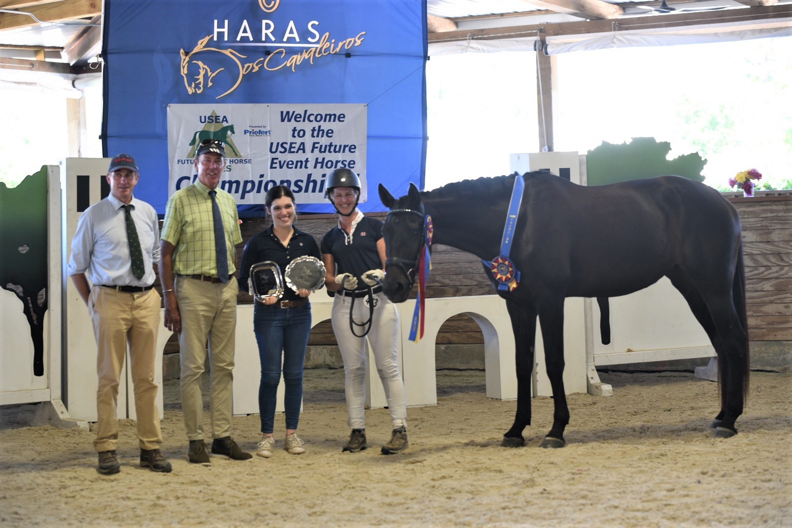 The striking bay mare, Dark Shadows d’Avalon (Dracula d Avalon x Chanel d’Avalon) was the judges favorite in both conformation and the jump chute. Known as ‘Ella,’ the Oldenburg mare earned a final score of 81.69 to earn the title of the 2019 USEA FEH Central 3-year-old Champion.