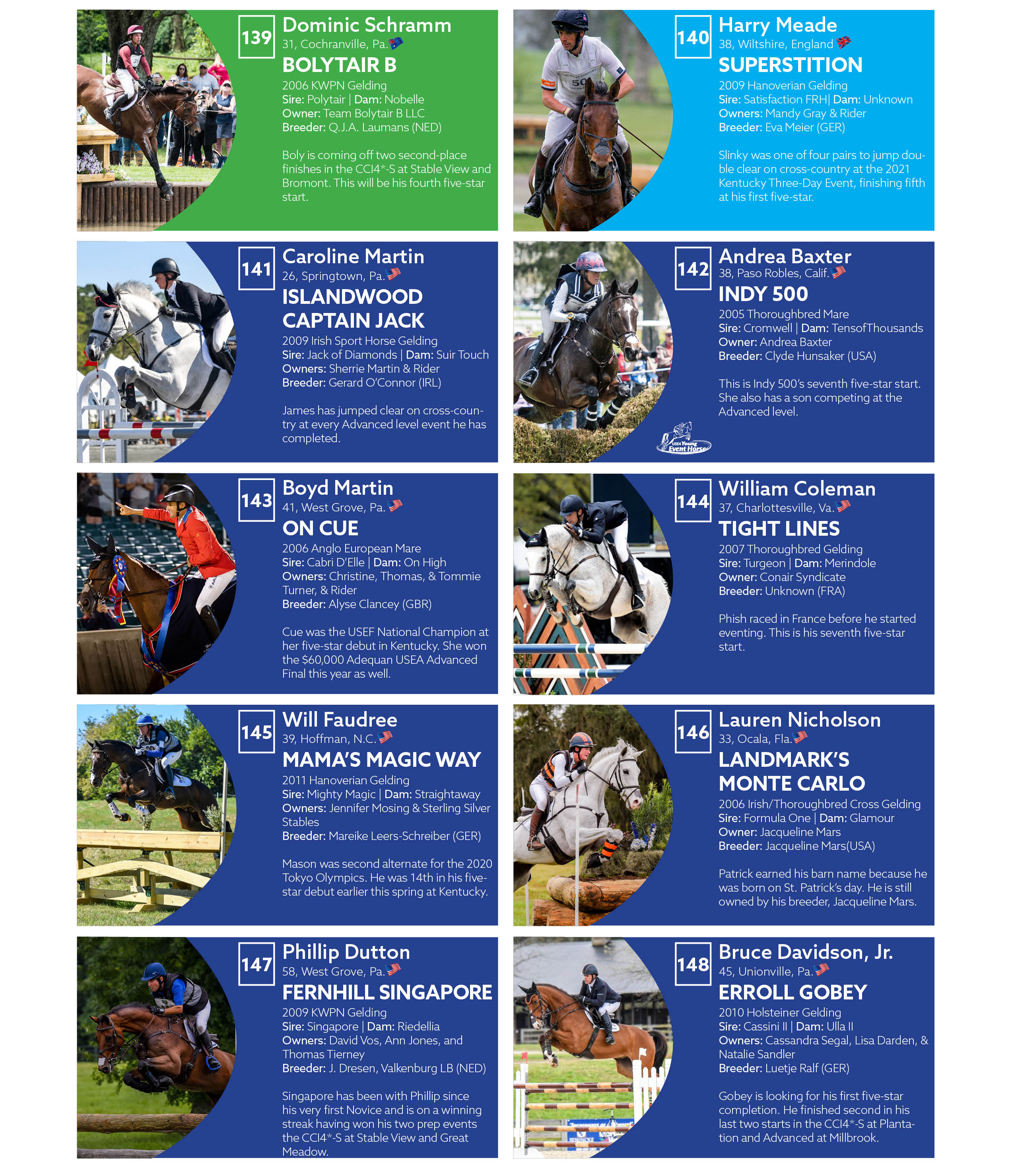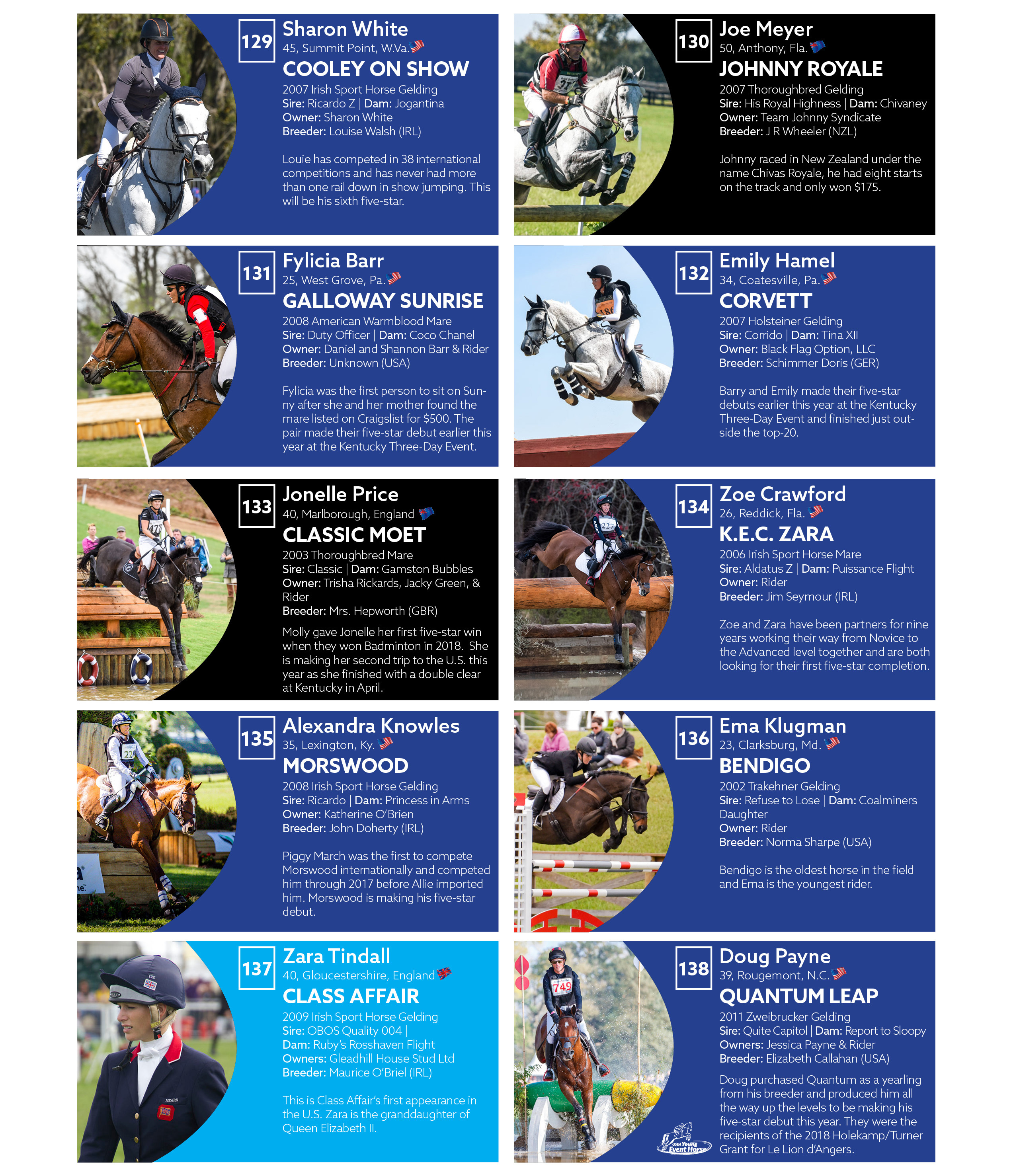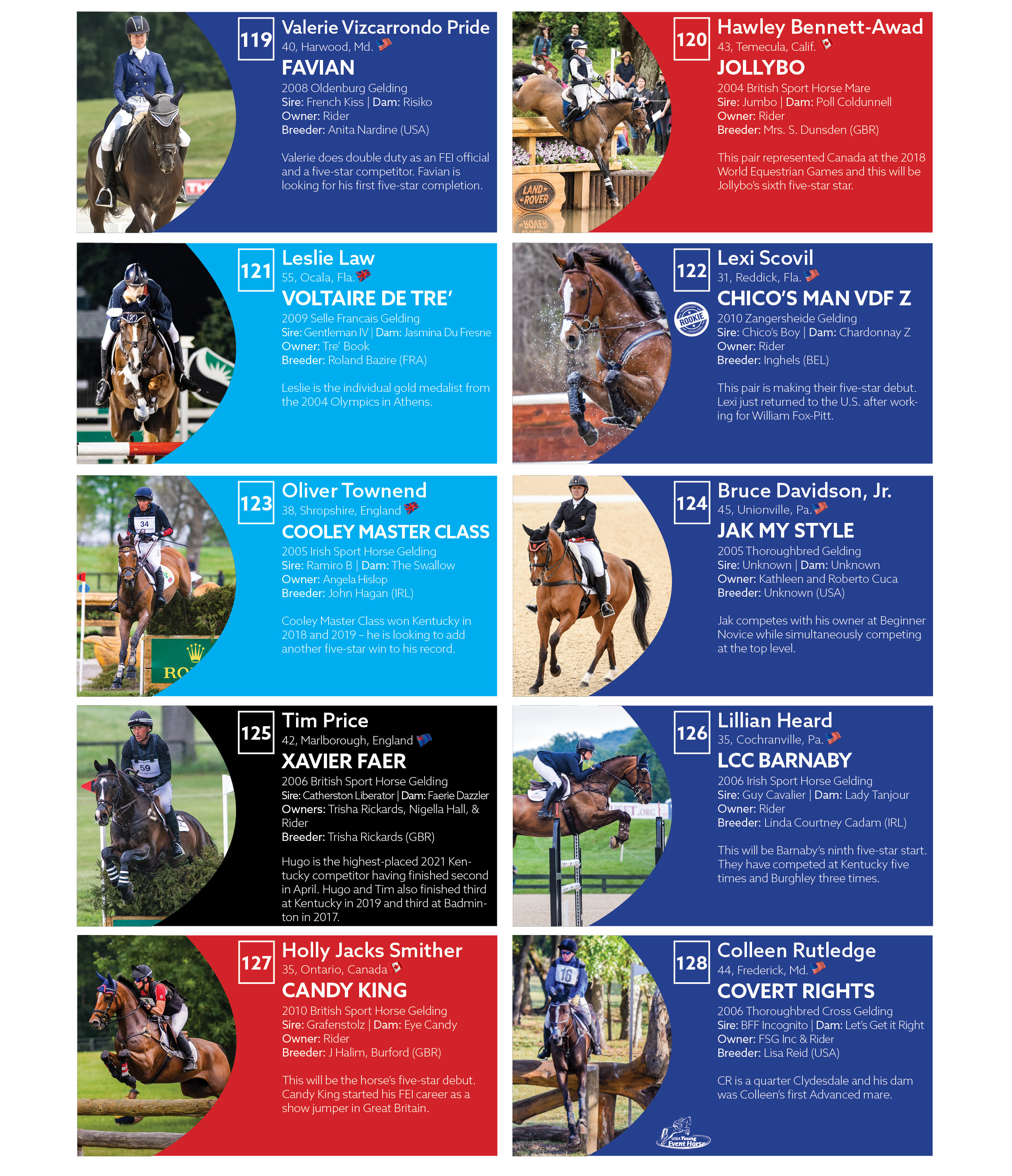 To help you get to know this year’s field of competitors, we’ve collected data on every horse and rider as well as fun facts about the pairs to get you excited for this weekend’s competition.