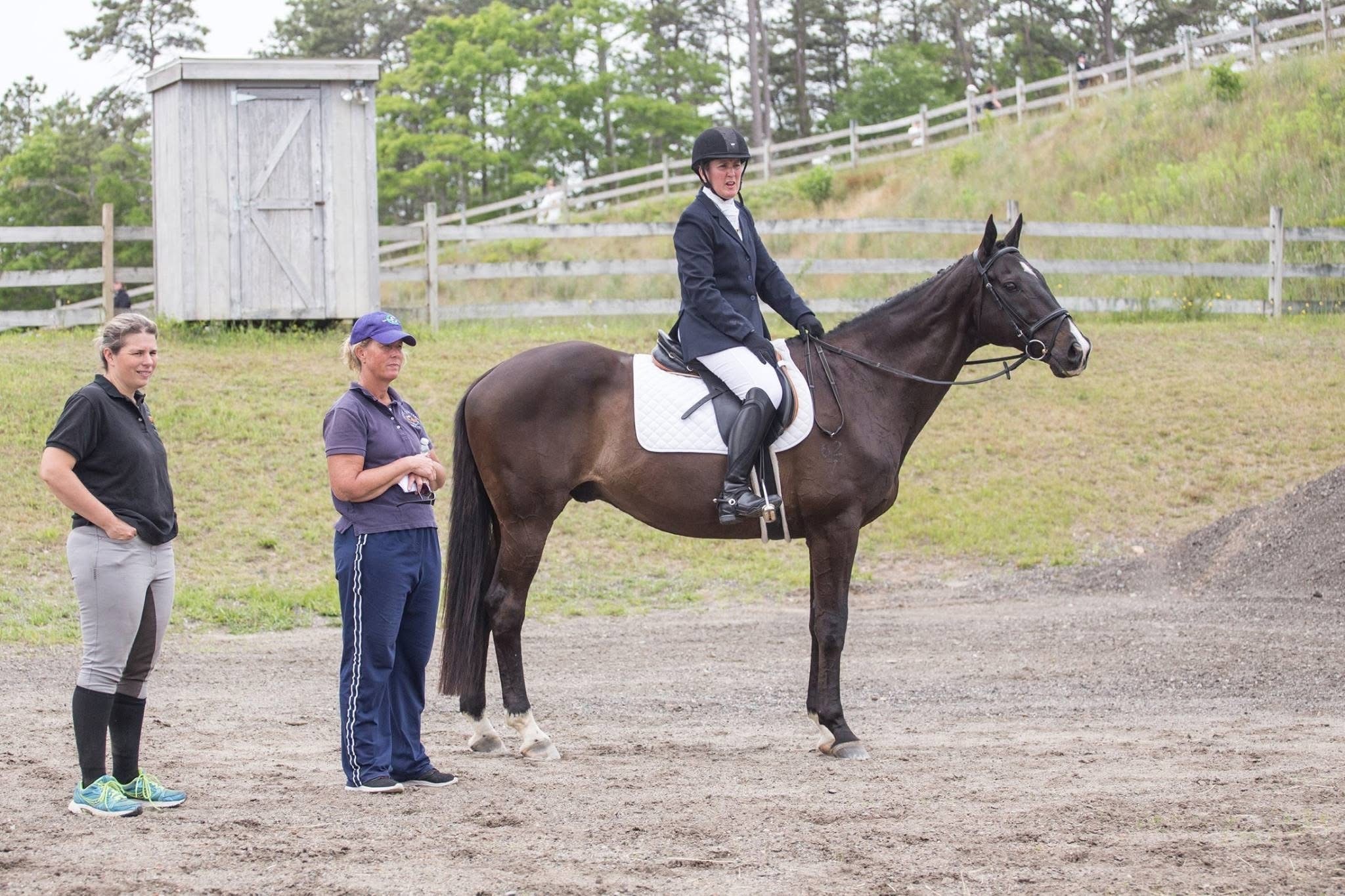 When Alison returned to New Hampshire in April, a new chemo regimen hit her hard, but she was ringside at almost all the events coaching in her pink hat or sitting in her ring at home teaching lessons when she could. Always striving to further her own training, she’d been working towards additional credentials, and in May she got her USEF ‘r’ eventing judge’s license. “It’s a long process and a lot of work, but I really enjoyed the educational aspect,” she said.