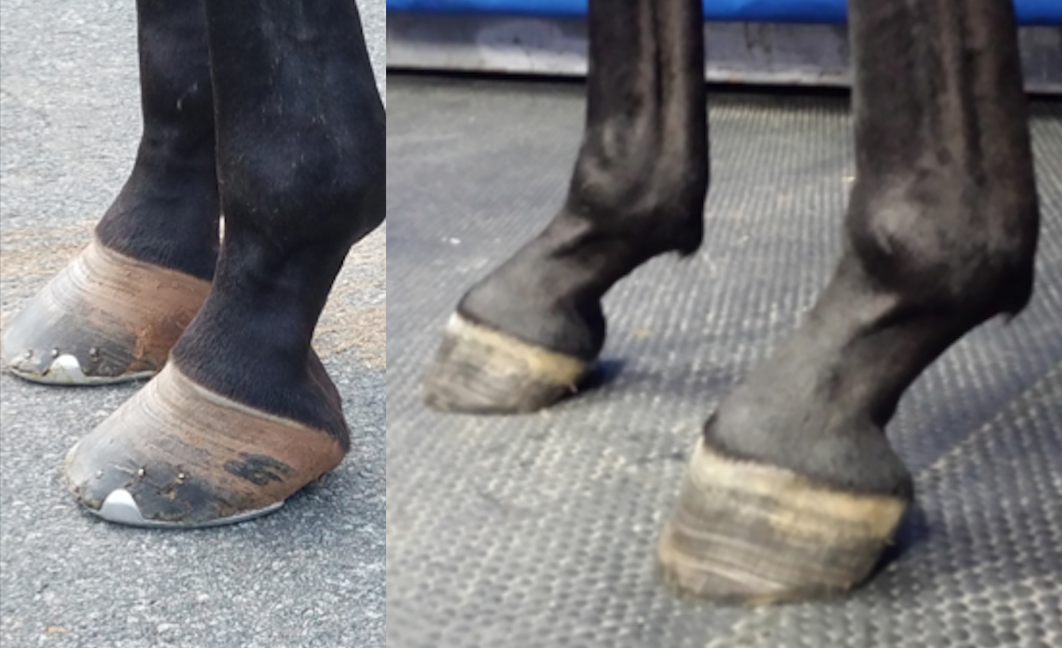 All of the conformational defects in the front leg can have an effect on the conformation of the feet. For example, a horse who stands wide at the base will have issues in the hoof, coffin joint, and even the pastern. “The hooves will curve because he’s putting a lot more stress on the inside and stretching the outside.”
