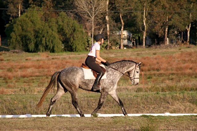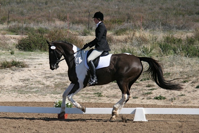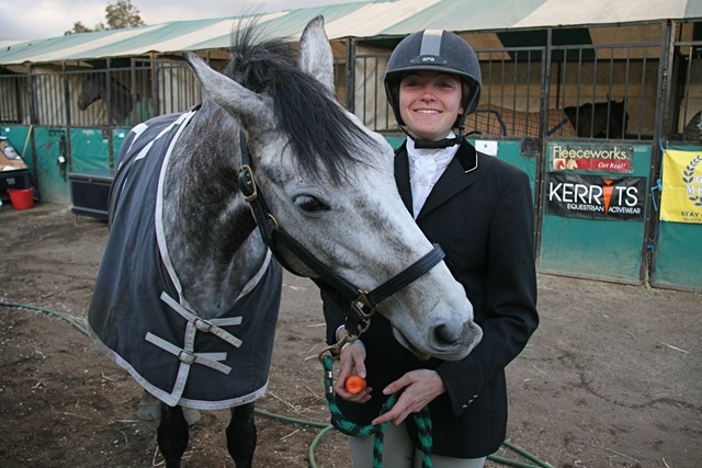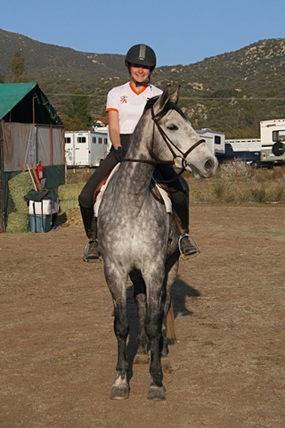 After Ringo's naughtiness at Twin Rivers, I had learned to try a new warm-up technique for him for the dressage that involved going for multiple shorter rides before my time instead of trying to do one long warm-up. I was delighted when it paid off! He was so relaxed and well behaved! I've always either gotten tense myself or ridden horses who naturally tense up in the ring, so I think it was the first time in my competitive career that I got to ride the same horse in the arena as I had out in warm-up. Awesome!! All the points we lost were errors of my riding and not of Ringo's performance; he was absolutely perfect. I still need to work on finessing my aids for the medium gaits, especially at shows where he is much more sensitive than at home, as I caused him to break in both his medium trots - bad Kate! But I thought I redeemed myself ever so slightly by riding a very tactful free walk (not Ringo's particular strength, as he is far too clever and a bit anticipatory), for which I was absolutely blown away when I received a 9 - my first ever at a sanctioned event!