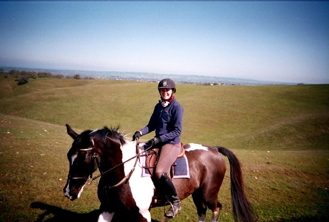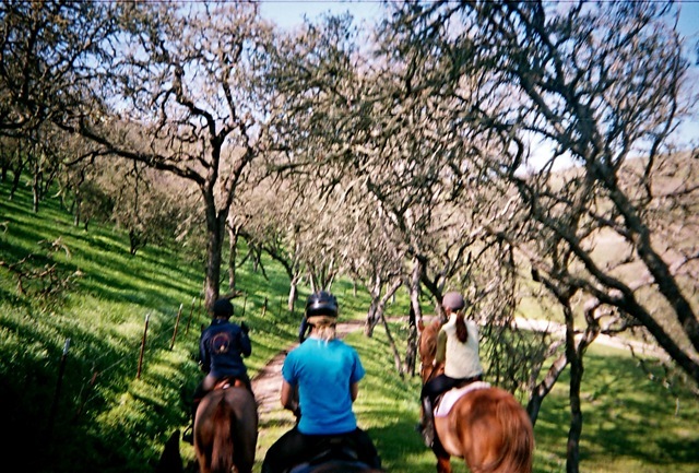 For example: I had heard a rumor that one of Ringo’s first potential careers was a hunt horse. I have no idea whether this is actually true, though I can see the appeal: he would cut quite the dashing picture, bounding across a green hillside with a pack of multicolored hounds. Unfortunately, as the rumor goes, poor Ringo was "excused" from the hunt field at a fairly young age and so went on to other, less "galloping in a group"-oriented things. Well, this thought was tumbling around the back of my head when we packed up five of the hottest horses (Ringo included) for a group gallop at Rainbow. But, as Ringo had been so good on all of our previous outings to the ranch (with fewer, calmer horses), I thought to myself, "Nah, he’ll be fine." Well! I quickly got to experience first hand why Ringo may have been "excused" from his hunt field career, when we went to canter across the ridge line on the back of the property and he took off rodeo broncing and showing off some impressive lateral range with his flying back hooves! After a few laughs and a few extra moments of reining him in, Ringo and I unfortunately had to spend the rest of the ride relegated to the back of the group – not exactly Ringo’s or my favorite spot! From that moment out, Ringo was in full-on "fire breathing" mode, complete with unnecessary toe-pointing and eye-rolling. While we still had a great time (I think it’s impossible to not have a good time at Rainbow Ranch!), I definitely removed Ringo from the group gallop list from there on out. Lesson learned!