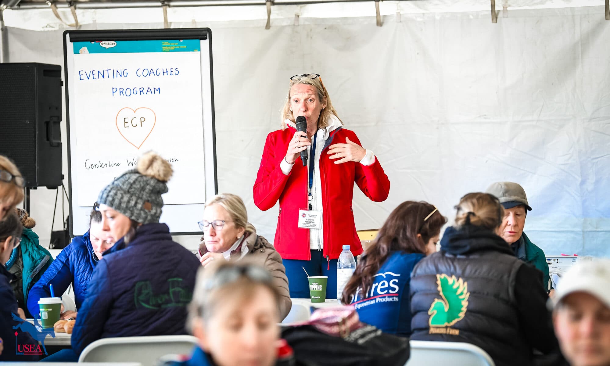 Coaches are essential to the training of riders and horses for safe and educated participation in the sport of eventing. The USEA Eventing Coaches Program (ECP), formerly known as the Instructors’ Certification Program (ICP), was initiated in 2002 to educate all levels of eventing coaches with crucial training principles upon which they can continue to build throughout their teaching careers. ECP offers educational workshops and assessments by which both regular coaches, Level I through Level V, Young Event Horse (YEH) coaches, and Young Event Horse professional horse trainers can become ECP certified. Additional information about ECP’s goals, benefits, workshops, and assessments as well as names and contact information for current ECP certified coaches, YEH coaches, and YEH professional horse trainers are available on the USEA website. Click here to learn more about the USEA Eventing Coaches Program.
