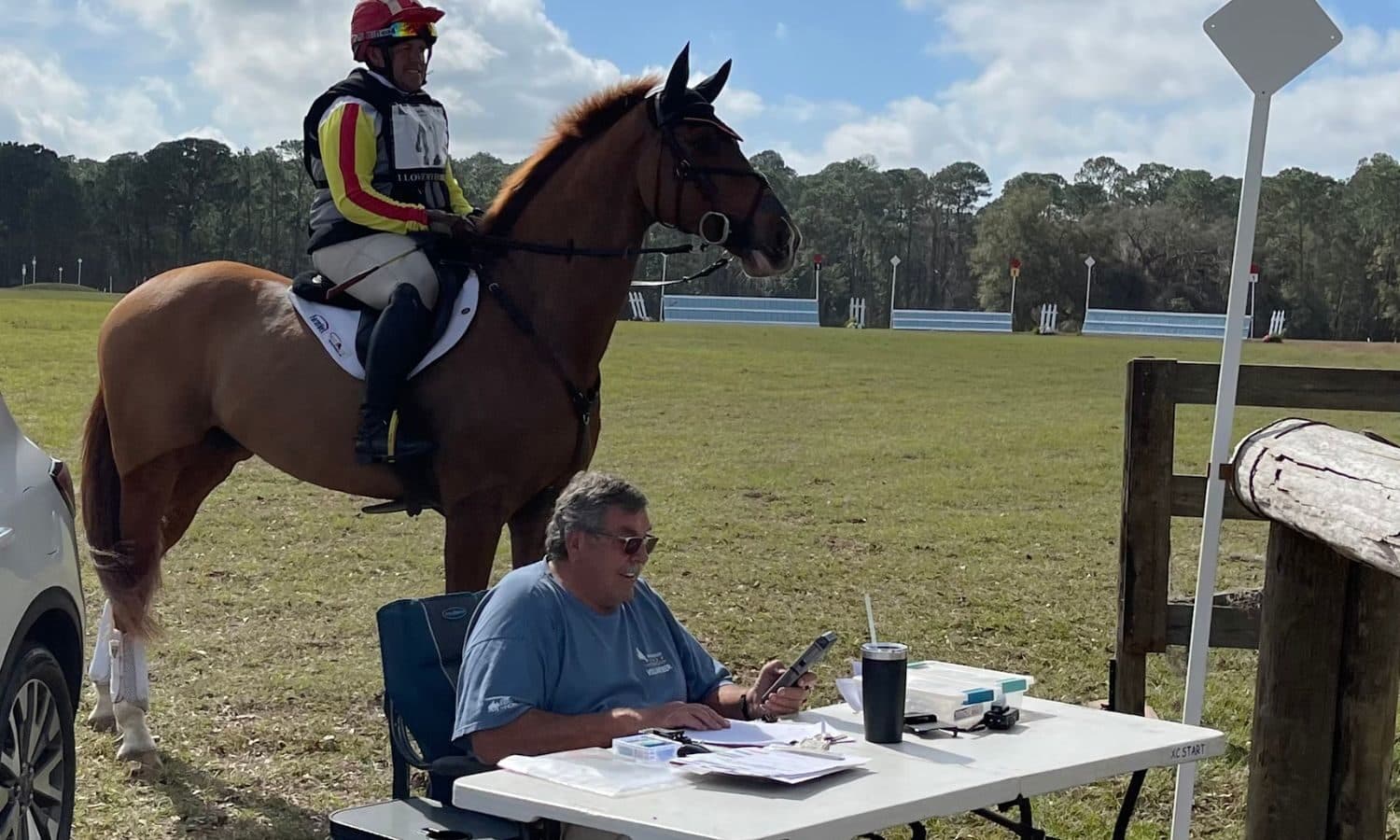 Owen can most often be found handling cross-country start or finish at Florida events like Rocking Horse, Three Lakes, Grand Oaks, Majestic Oaks, Ocala, and Barnstaple. He’s traveled further south to TerraNova and has also helped out at Tryon (Mill Spring, North Carolina) in Area II.