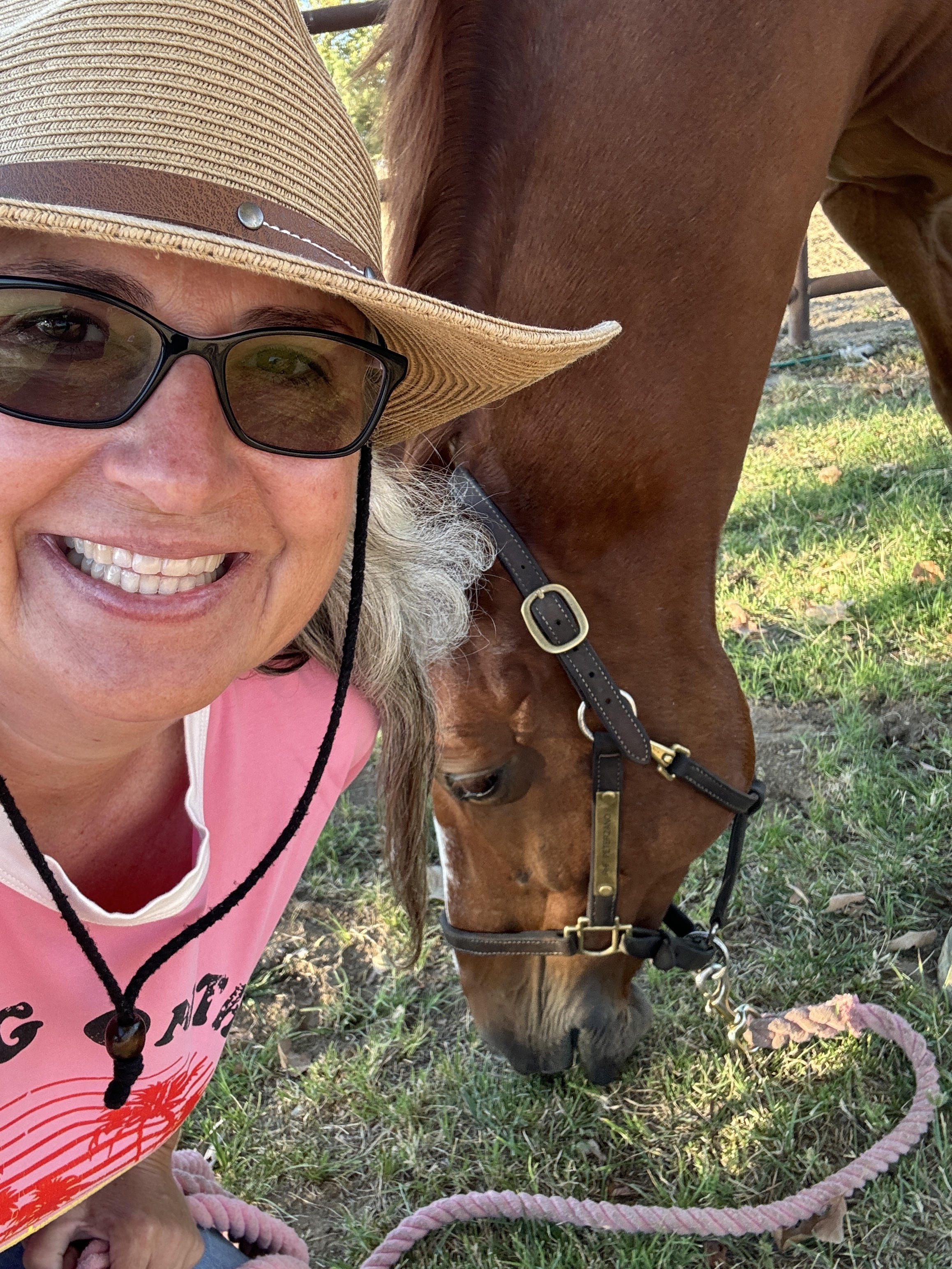 Originally from Orange County, California, Suzy wasn’t able to ride growing up, but as soon as she left home and moved to a more agricultural area, she bought her first horse. While she rode both English and Western, Suzy focused her energy on barrel racing and reining. Now, she says, those days are mostly in the past.