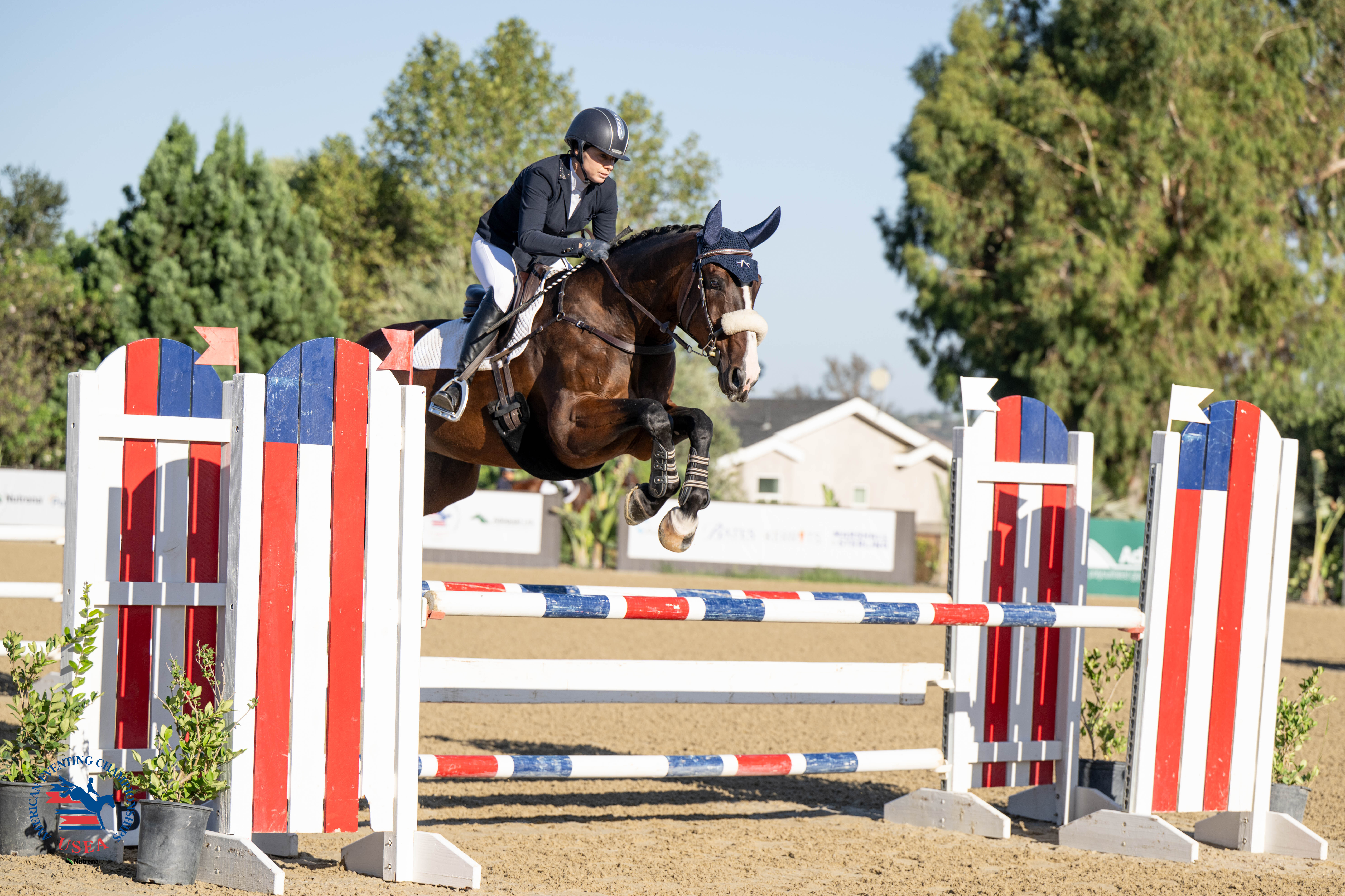 The Murrieta, California-based rider partnered with the grey gelding in February. “He’s a super horse,” she said. “He’s very enthusiastic, and I feel like he’s grown with confidence. He’s a careful horse, and rideable and fast. I was really pleased with the dressage, and I think that was the highlight of his weekend.”