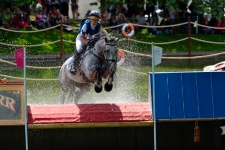 But Mary King’s Imperial Cavalier is a strong horse at the best of times, and the noise from the behind the ropes just spurred him on over the early part of the track. He was running so freely that her compulsory stop after the second water complex, due to fence damage incurred when Japan’s Takayuki Yumira and Latina tipped up at the Cricket Ball Basket (fence 23), may well have been opportune. “I was very nervous of the crowd”, King said after resuming her ride to complete with just 1.2 time penalties, “but it was wonderful to have such support behind us.”