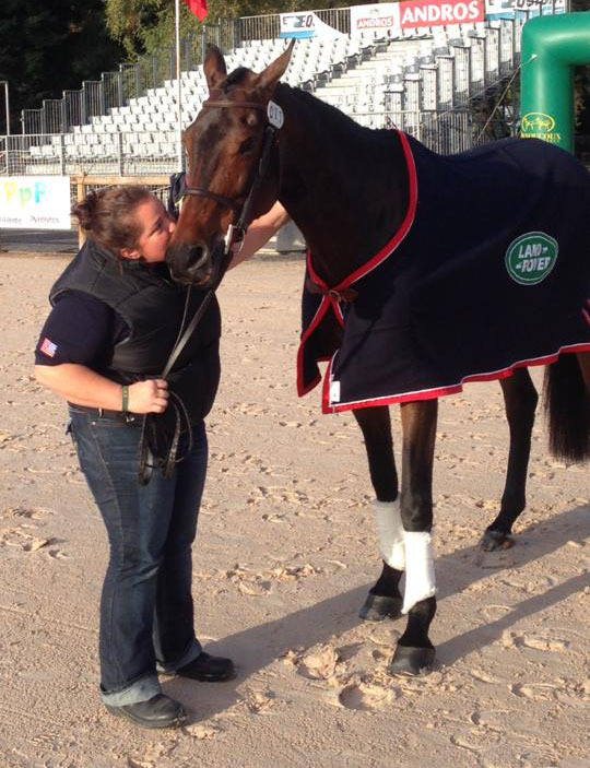 Shannon Kinsley is the groom for CCI4* rider Lauren Kieffer. Shannon has many years of experience taking care of horses both at home and in International Competition. For more information about Lauren Kieffer and Shannon Kinsley, visit www.laurenkieffer.com or be sure to follow their adventures via social media at https://www.facebook.com/laurenkieffereventing. Kinsley pictured left. Photo via LKE's Facebook Page.