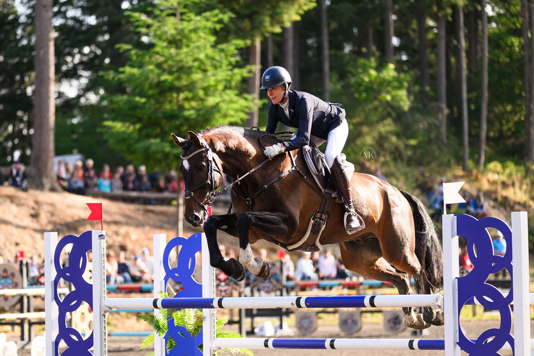 Yelm, Wash.—June 15— In the golden hour of a sunny evening at Aspen Farms Horse Trials, Tommy Greengard and Joshuay MBF delivered a flawless show jumping round to maintain their overnight lead in the CCI4*-S, this year a qualifier for the new US Equestrian Open of Eventing Series.