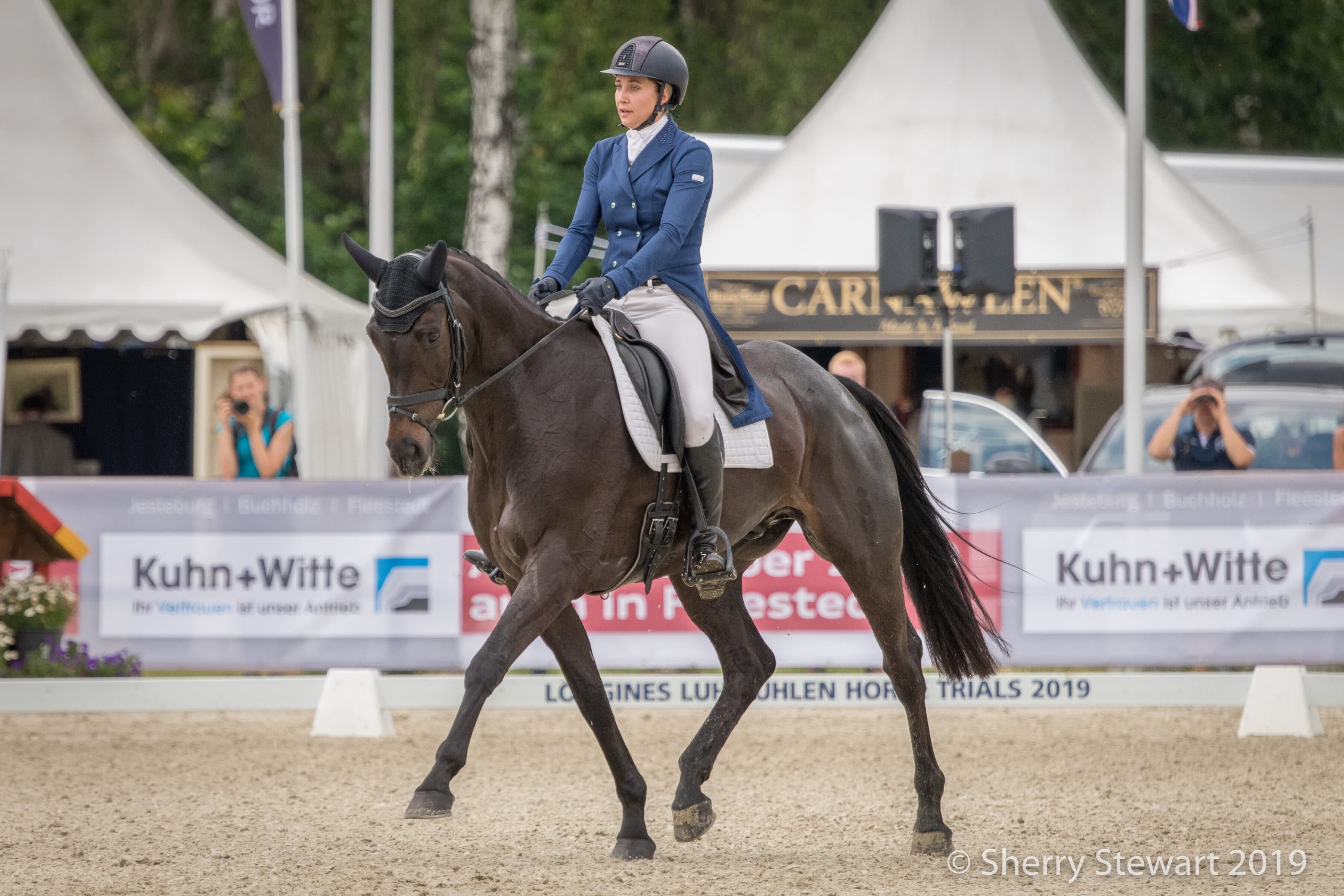 Thieriot Stutes was elated after her test today, especially as this is their first attempt at the five-star level. “I am so happy about our fabulous dressage score! Chatwin is a German horse and competed here as a 5-year-old. It’s brilliant to know that he’s back competing here as an experienced horse. He is so special and I am very fortunate to ride such a lovely athlete.”