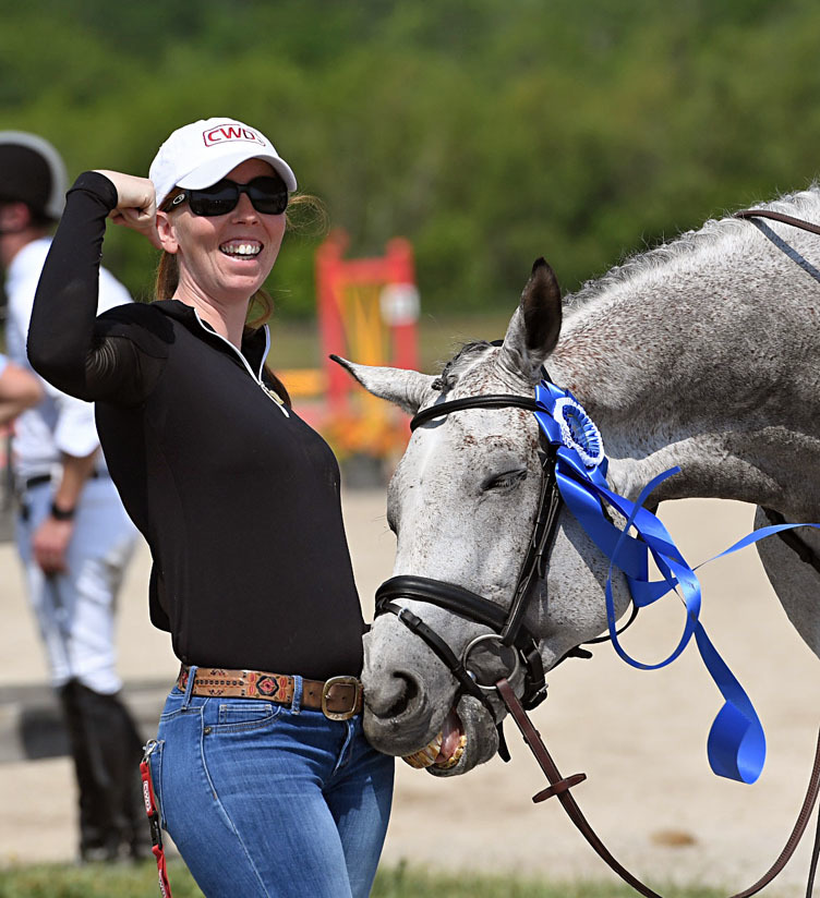 Gun Slinger celebrates his blue ribbon. Allen MacMillan Photo.