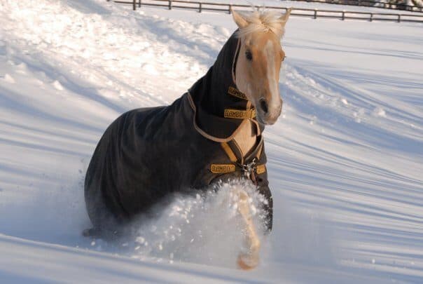 - “Play” with your horse! When the weather is really bad, do things like turn the horses loose in the indoor and play tag, jump over jumps, etc. That way, if you need to keep your snowsuit on, you can!