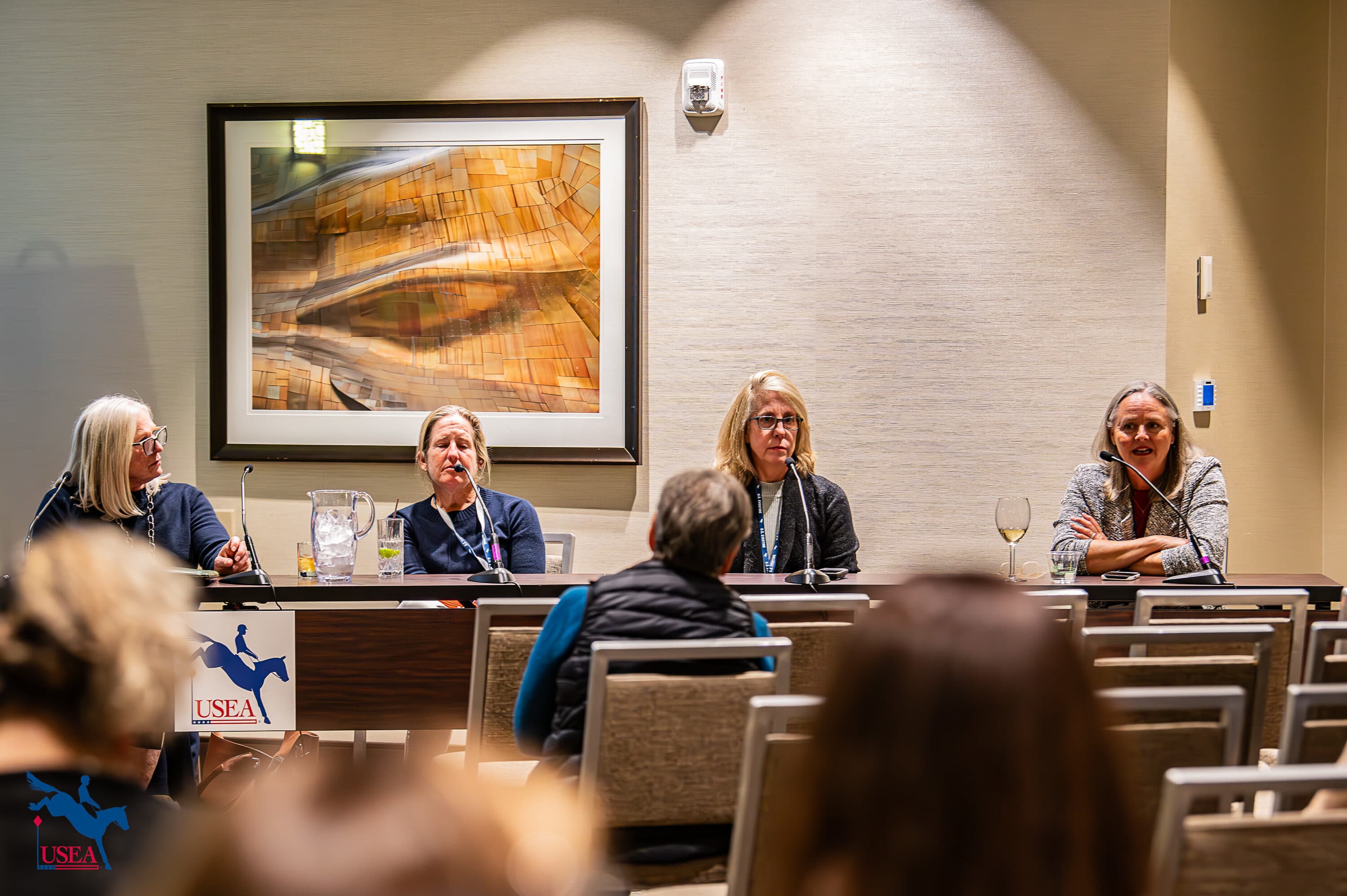 During the 2024 USEA Annual Meeting & Convention, held Dec. 12-15 in Seattle, Washington, USEA CEO Rob Burk was joined by a panel of individuals deeply involved in the USEA Foundation including USEA Foundation Chair Hilary Miskoe, multi-time Foundation grant recipient Sharon White, Beth Lendrum of the Broussard Charitable Trust Foundation, and USEA Foundation Development Officer Katherine Cooper. Together, these five individuals shared their top tips for those interested in applying for USEA Foundation grant funding in the future to help make sure your application stands out in the most positive way.